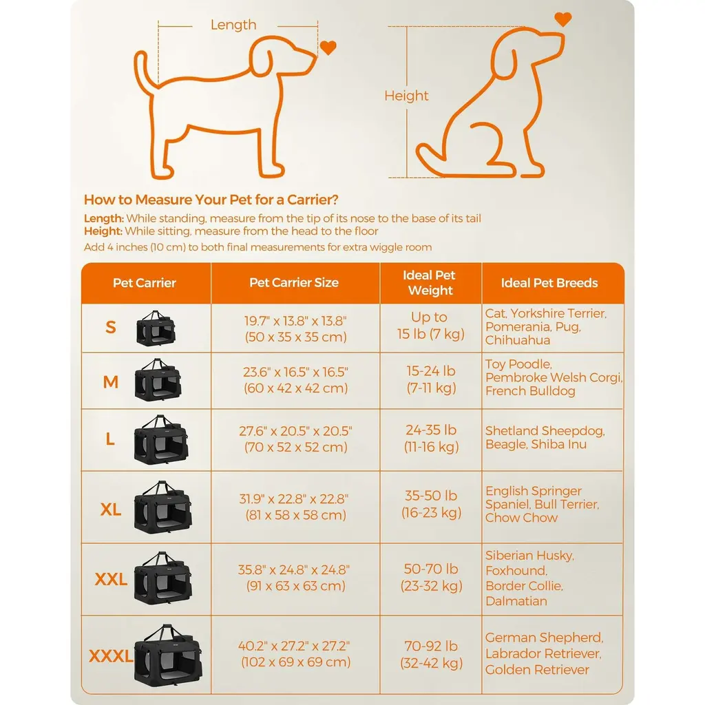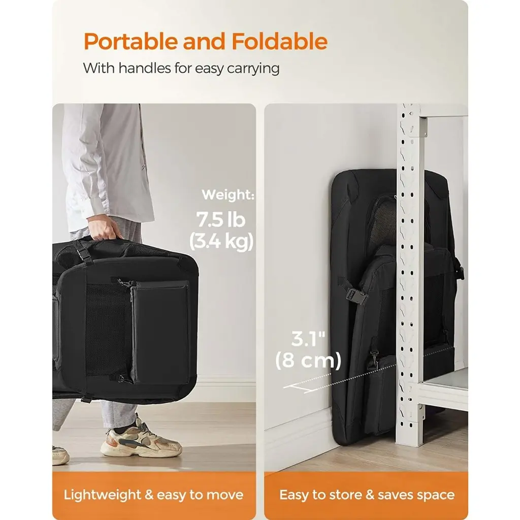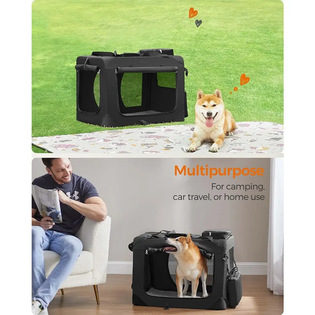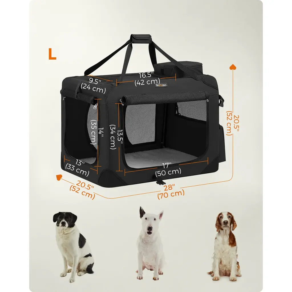Metal Frame Oxford Fabric Foldable Soft Pet Carrier With Mesh Windows And Side Pockets - L - Black