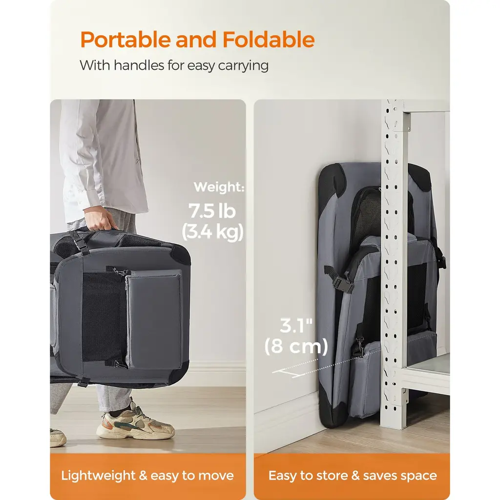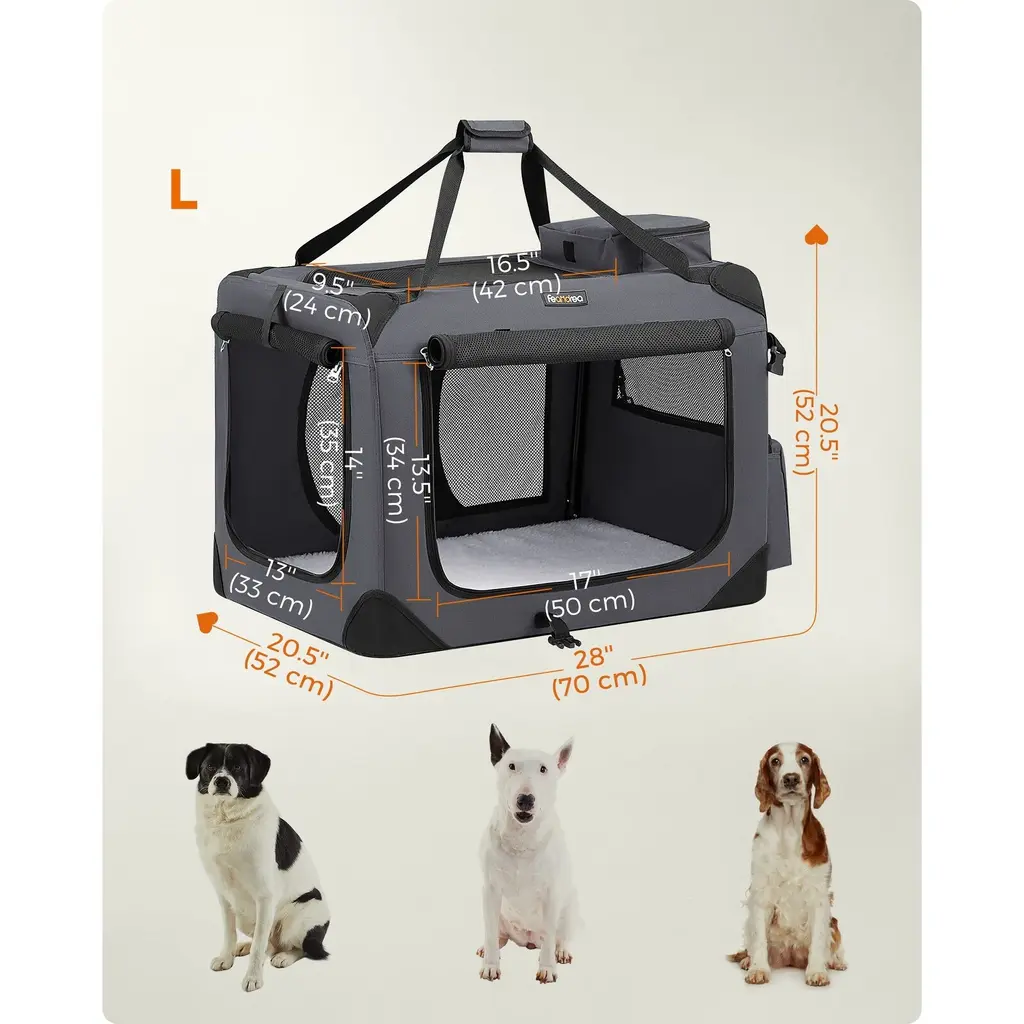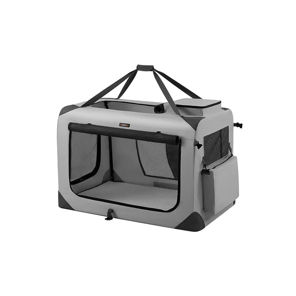 Metal Frame Oxford Fabric Foldable Soft Pet Carrier With Mesh Windows And Side Pockets - L - Grey