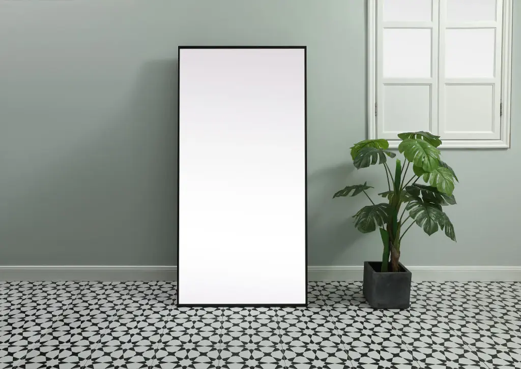Add a rectangular full length mirror to your home decor to elevate it to the next level. A full-length mirror is the perfect wall decor choice for any room or living space. This accessory is perfect for adoring full outfits in the full length of your body or providing a full view of yourself in any room, perfect for dressing areas and even bathrooms. Not only does this full-length iron frame large wall mirror provide practical uses, but it also acts as a beautiful addition to any home decor with its sleek, modern design. The mirror can be leaned to the wall, free-standing, or can be installed vertically or horizontally on the wall. Available in three satin finishes: black, brass, and silver.Versatile rectangular full length mirror provides a full body view in three ways: leaned it against the wall, use the attached easel, or mount it on any secure wall to save space. (mounting hardware is not provided)the mirror comes with a solid MDF board backing and five welded keyhole hanger for easy installationMirror is recessed into the ultra-thin iron sturdy metal frameperfect accent mirror to add visual interest and depth to your bedroom, living room, bathroom, entry way or any room!can be mounted both in a vertical or horizontal orientationmirror arrives at your home in one piece with no installation requiredglass insert measures 29.22 inch wide X 0.15 inch deep X 59.22 inch high
