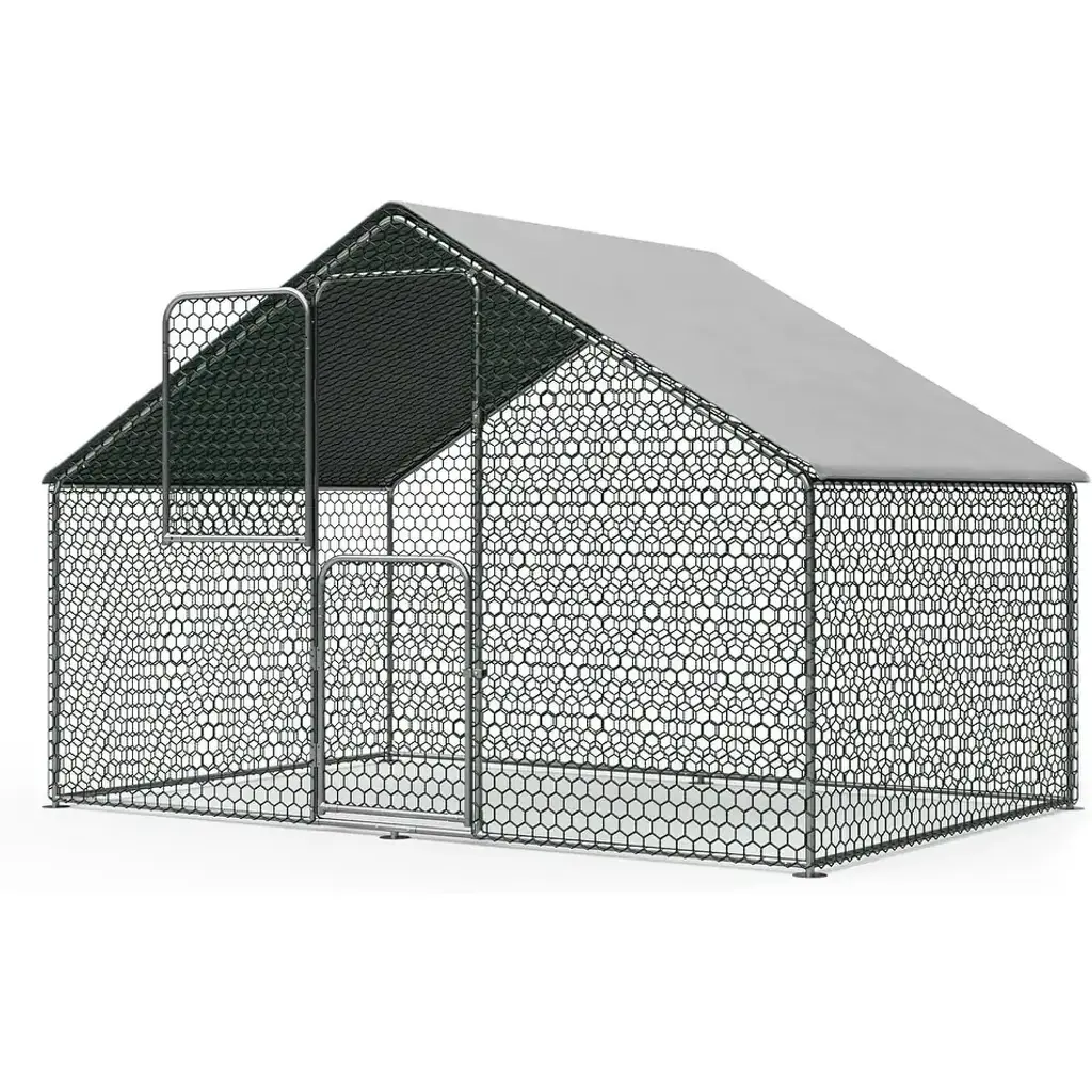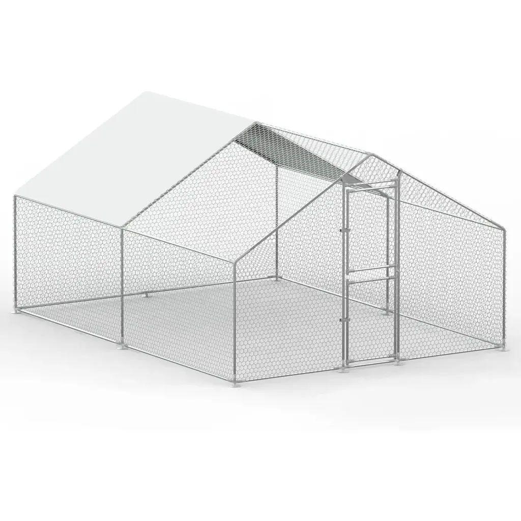 Metal Galvanized Pipe Pointed Roof Chicken Coop Without Reinforcement - 9.8'wx13.1'dx6.6'h