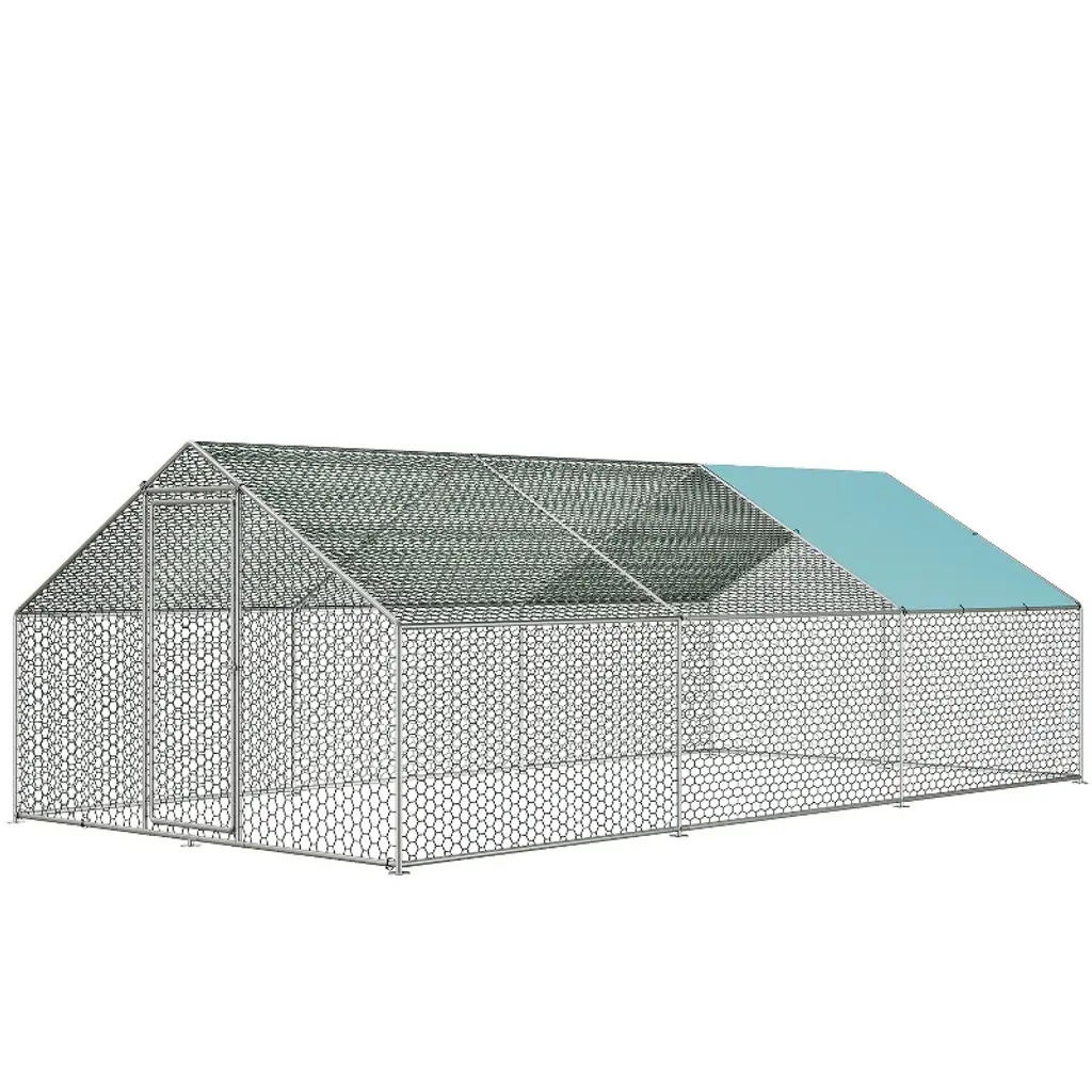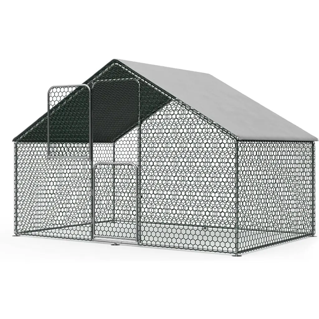 Metal Galvanized Pipe Pointed Roof Chicken Coop Without Reinforcement, 9.8'wx13.1'dx6.6'h
