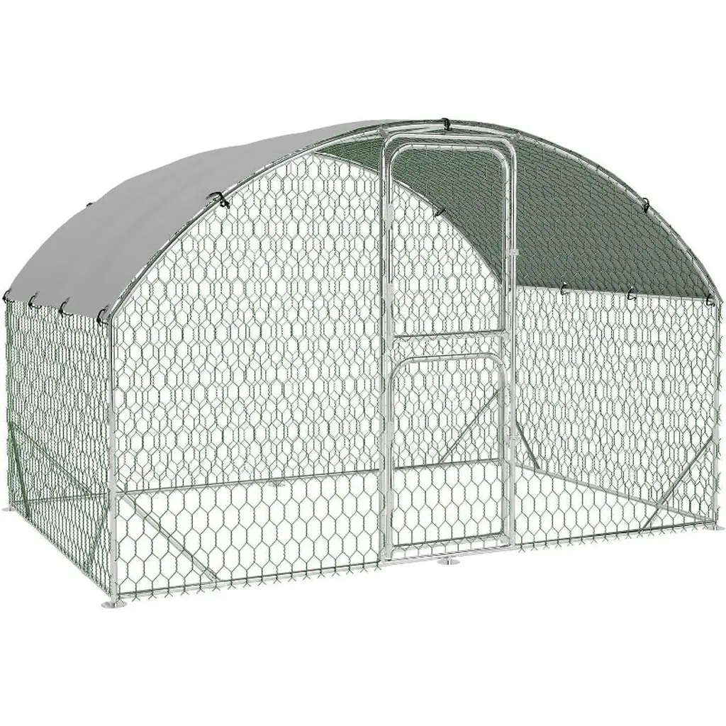 Metal Galvanized Pipe Pointed Roof Chicken Coop Without Reinforcement, 9.8'wx6.5'dx6.5'h