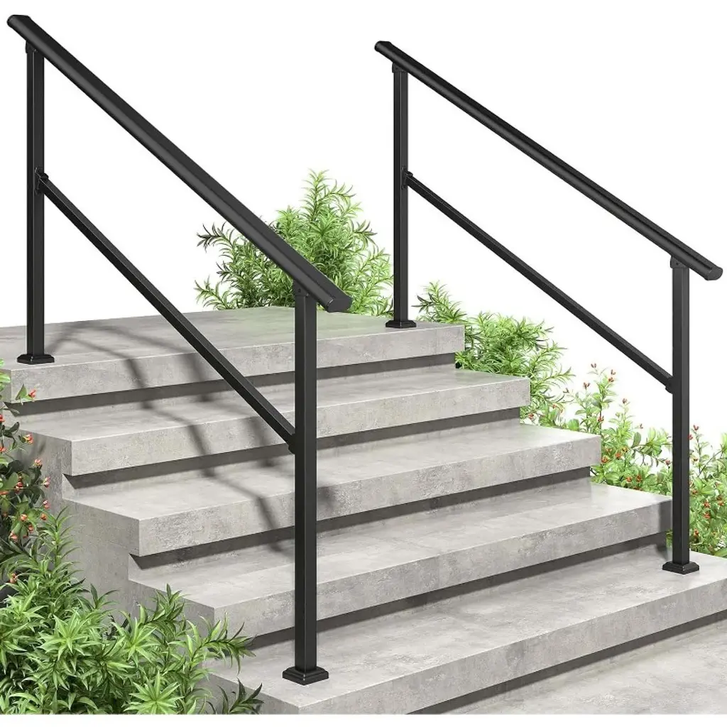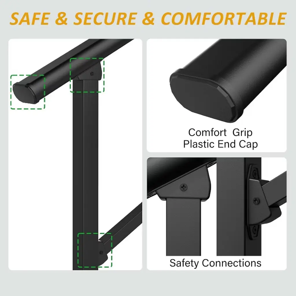 Our handrails for outdoor steps are designed with an adjustable height and angle, making them compatible with various step heights and stair configurations. Whether your steps are low, high, or uneven, these handrails can be customized to ensure a secure fit. This flexibility eliminates the need for cutting or modifications, saving you time and effort. Perfect for outdoor steps, porches, balconies, and walkways, these handrails provide a reliable solution for enhancing safety and accessibility in any setting. Crafted from high-quality aluminum and wrought iron, these handrails are built to withstand harsh weather conditions. The weatherproof coating resists rust, fading, and scratches, ensuring they maintain their appearance and functionality year after year. Rain, snow, or sun, these handrails will remain sturdy and reliable, making them a long-lasting investment for your outdoor spaces. The handrail’s smooth, ergonomic surface ensures a comfortable and secure grip, reducing the risk of slips and falls. Whether on concrete or wooden steps, this feature provides added stability for seniors, children, and anyone in need of extra support. The smooth finish is gentle on hands, making it ideal for daily use. The stair railing kit includes all necessary hardware and clear, step-by-step instructions, making installation quick and easy. No professional help is required—simply follow the guide and assemble your outdoor stair railing in minutes. This user-friendly design ensures you can enhance safety and accessibility without any hassle. Suitable for both residential and commercial use, these handrails are perfect for outdoor steps, porches, decks, and balconies. Their stylish design and durable construction make them a practical addition to any environment, ensuring safety and accessibility wherever needed.