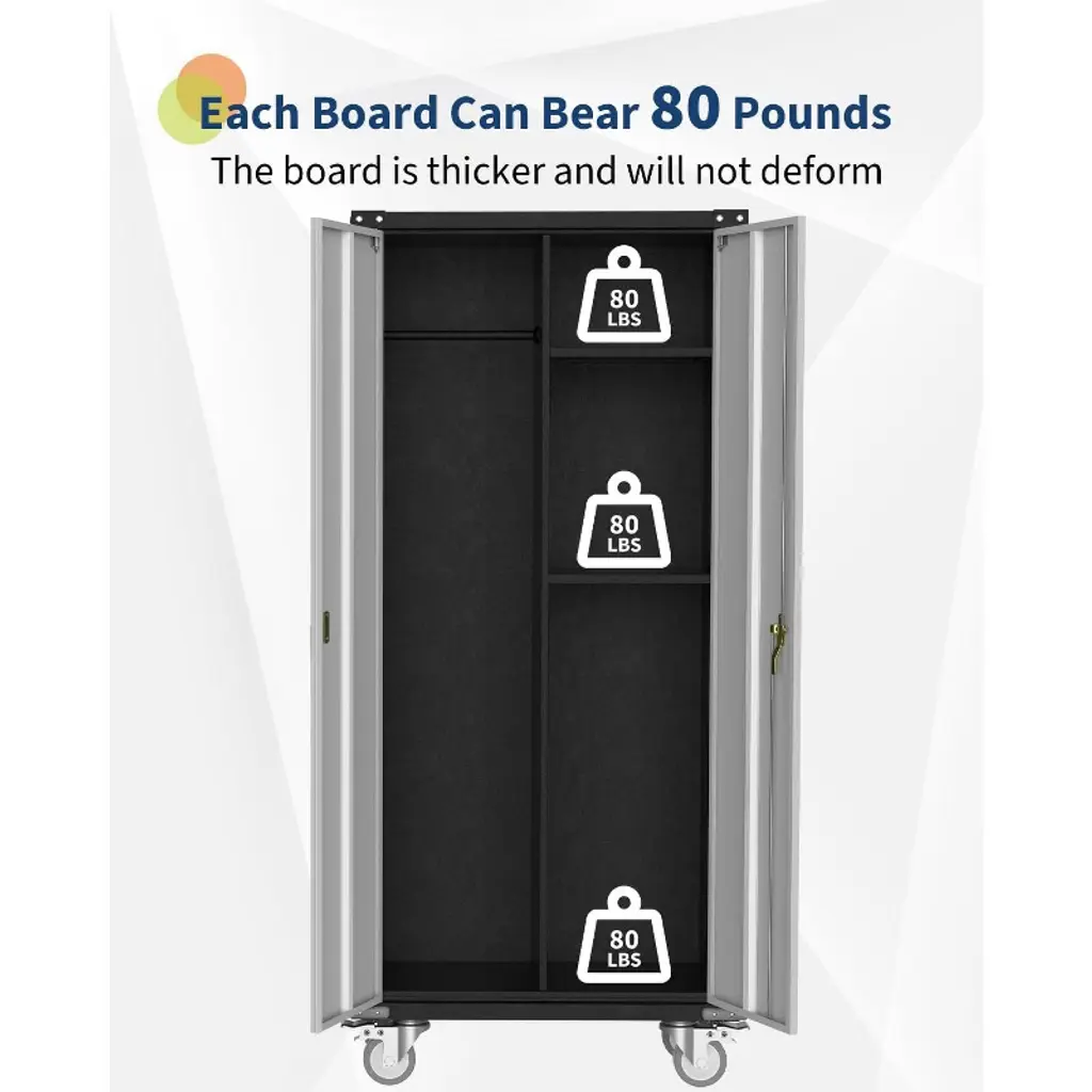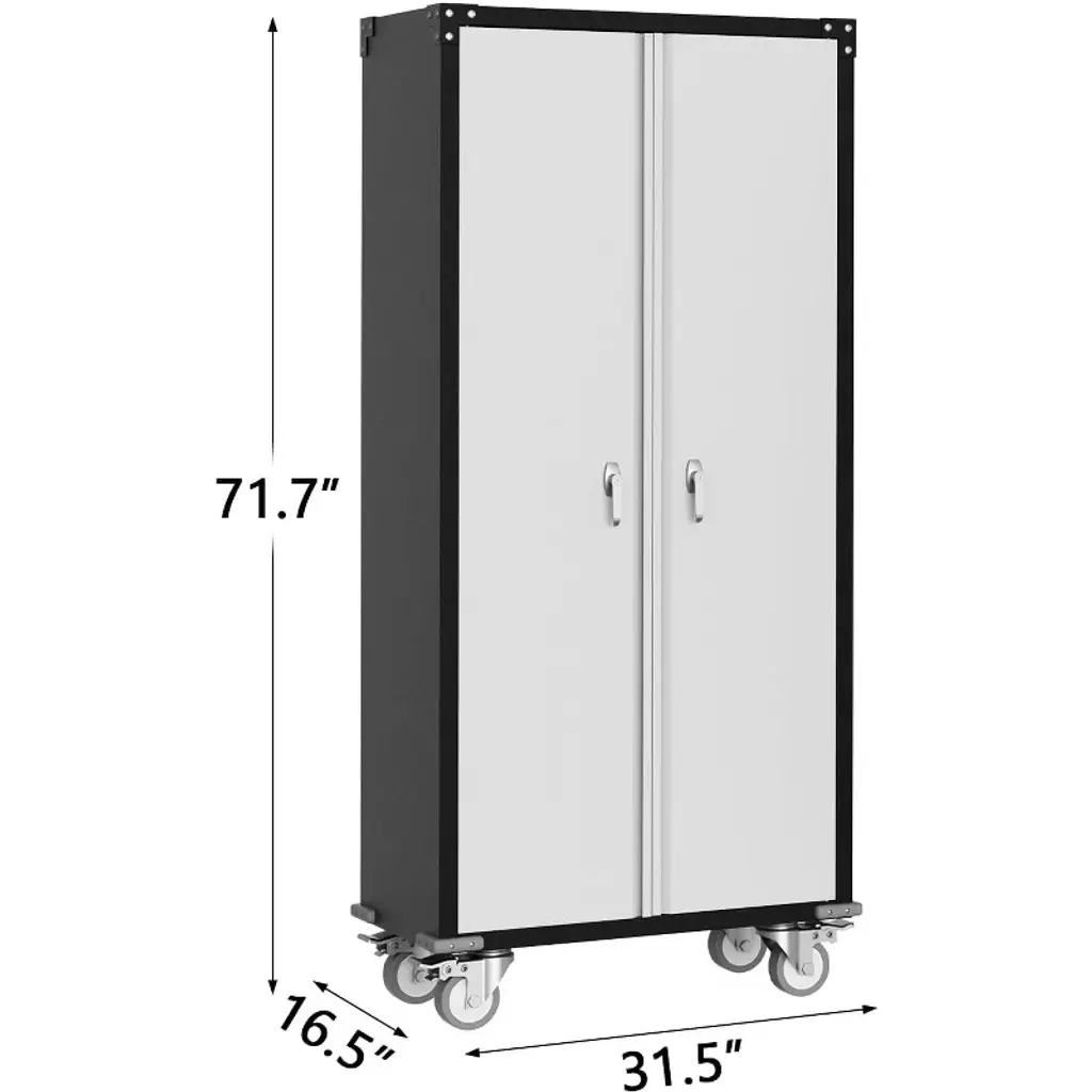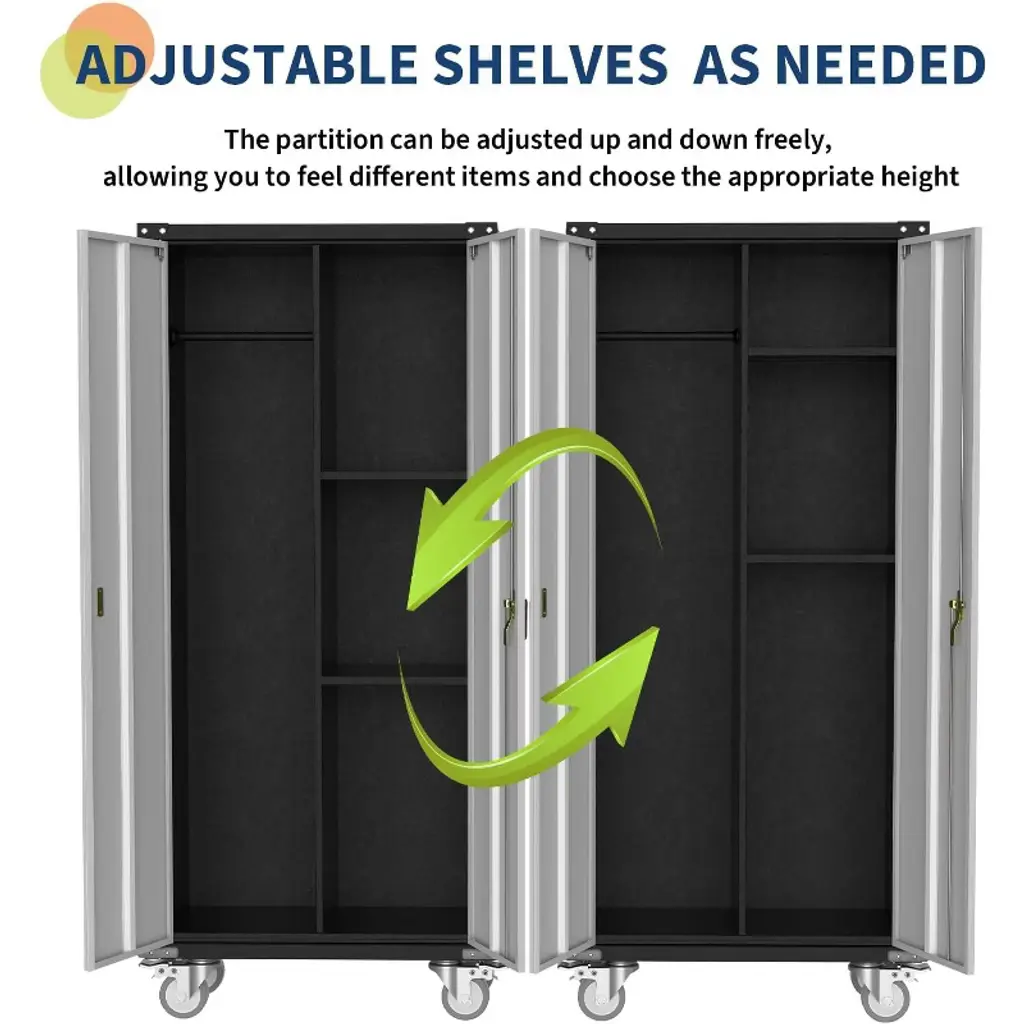 Metal Locker Storage Cabinet with Wheels 71" H with Doors and 2 Shelves Adjustable 4 Adjustable Feet for Home,Garage,Office,Shop