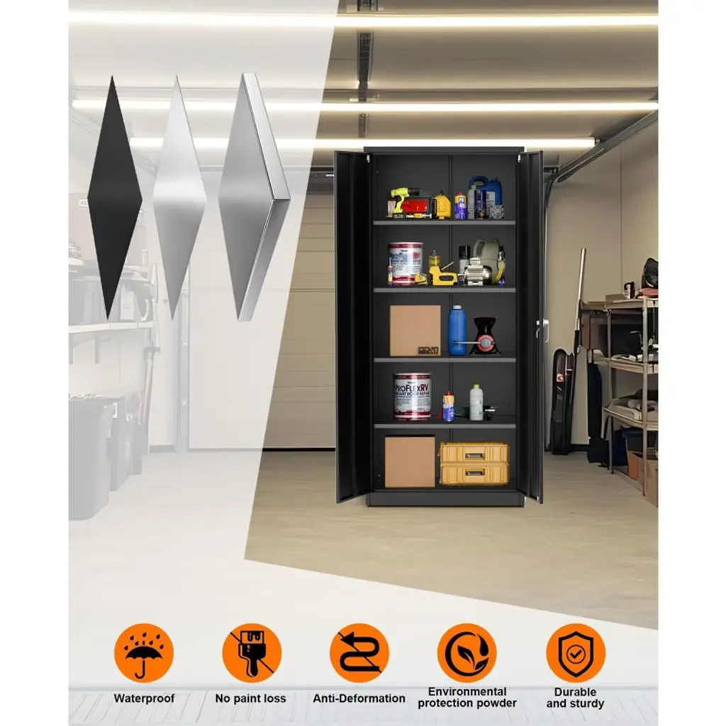 Introducing our Metal Storage Cabinet with Lock, the perfect solution for organizing your tools and supplies in your home, garage, office, or shop. Crafted from durable steel, this tool cabinet offers long-lasting strength and security, ensuring your valuables are safely stored.