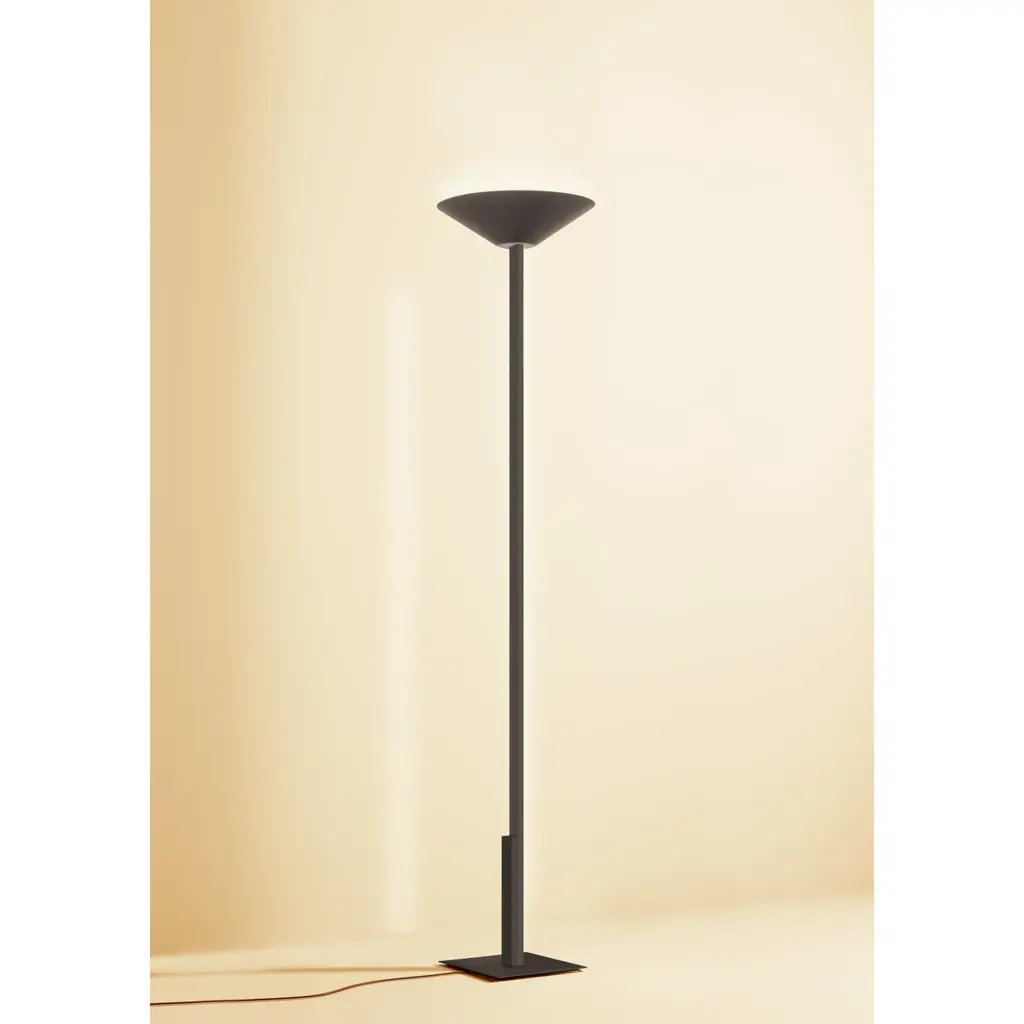 Illuminate your space with the Metallic Bar Torch | Contardi Fly. This versatile lamp, available in satin golden nickel, brushed bronze-nickel, and anthracite finishes, emits a line of brightness that adds a touch of elegance and sophistication to any room. With double indirect light emission and the ability to dim using the double touch control, this lighting bar is a must-have for any luxury space.