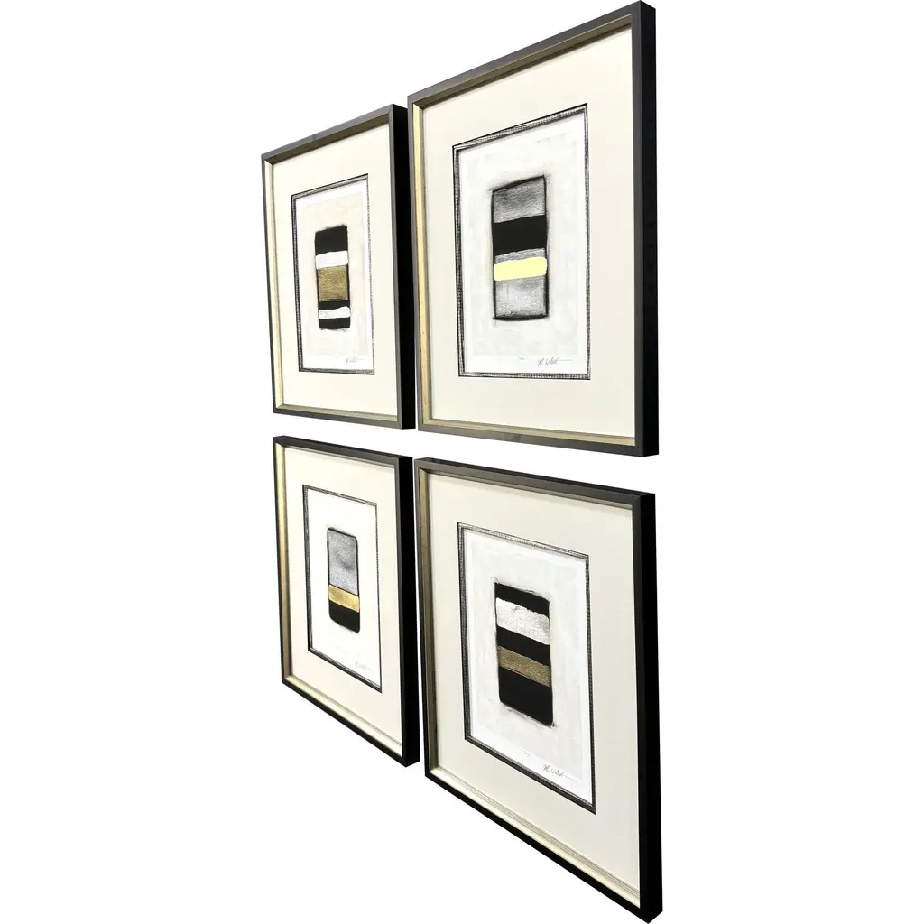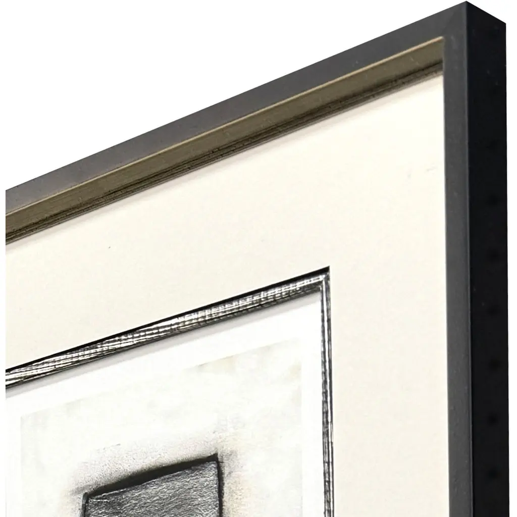 Exclusive limited edition giclee on fine art paper is hand embellished with metallic leaf. Framed in a black painted wood with silver leaf slope.