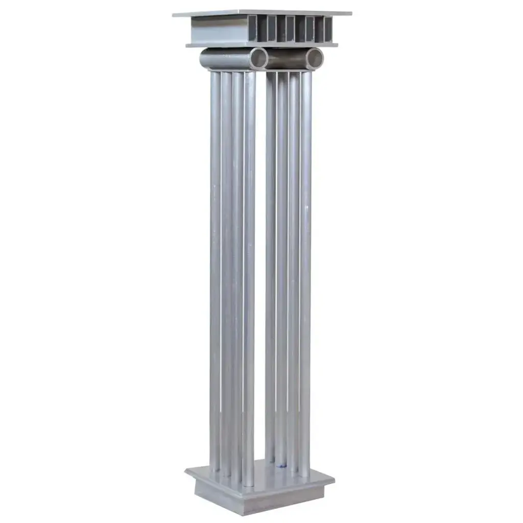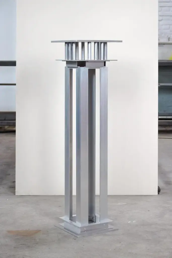 Metope column by joachim-morineau studio limited edition of 8 dimensions: h 110 x d 30 x w 30 cm, 18 kg materials: aluminium tubes, profiles, screws and sheets possibility to have a different colour/finish (such as blasted or anodized aluminium). Tholos, pteron and metope are columns that can serve as pedestals to display your favourite objects (or plants). Inspired by different temples structures and column shapes from the parco archeologico del colosseo in rome, made out of industrial aluminium profiles and sheets, these columns create a historical presence in your interior. Archetypes archetypes is a furniture collection created by the two designers, bringing ancient architecture archetypes together with industrial materials. Composed of a light installation, a table, a cabinet, pedestals, fruit bowls and more, the collection shows another aspect of studio joachim-morineau. Studio joachim-morineau is a design studio founded by carla joachim (fr) and jordan morineau (fr), based in eindhoven (nl). Their work is a mix of crafts, industrial techniques and technology. They use experimentation to push the limits of each field.