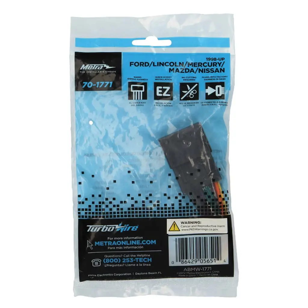 Complete your audio installation with Metra. The 1998 through 2009 Ford/Lincoln/Mercury/Mazda Power/4-Speaker Connector plugs into car harness 16 pin at the radio. Do the job right with Metra!
