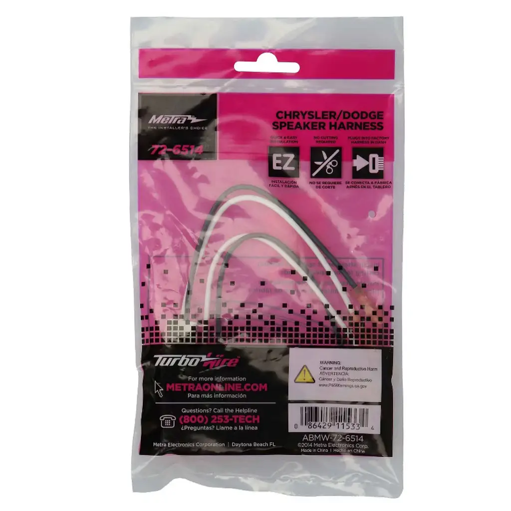 No mobile sound system is complete without speaker connectors! If you are replacing your factory speakers with new ones, the Metra® 72-6514 Speaker Harnesses make it easy to connect those new speakers into the OEM factory connectors. The slide-ons are designed for 1990 and up Chrysler® and Dodge® and will fit a wide variety of vehicles. Do the job right with Metra®!