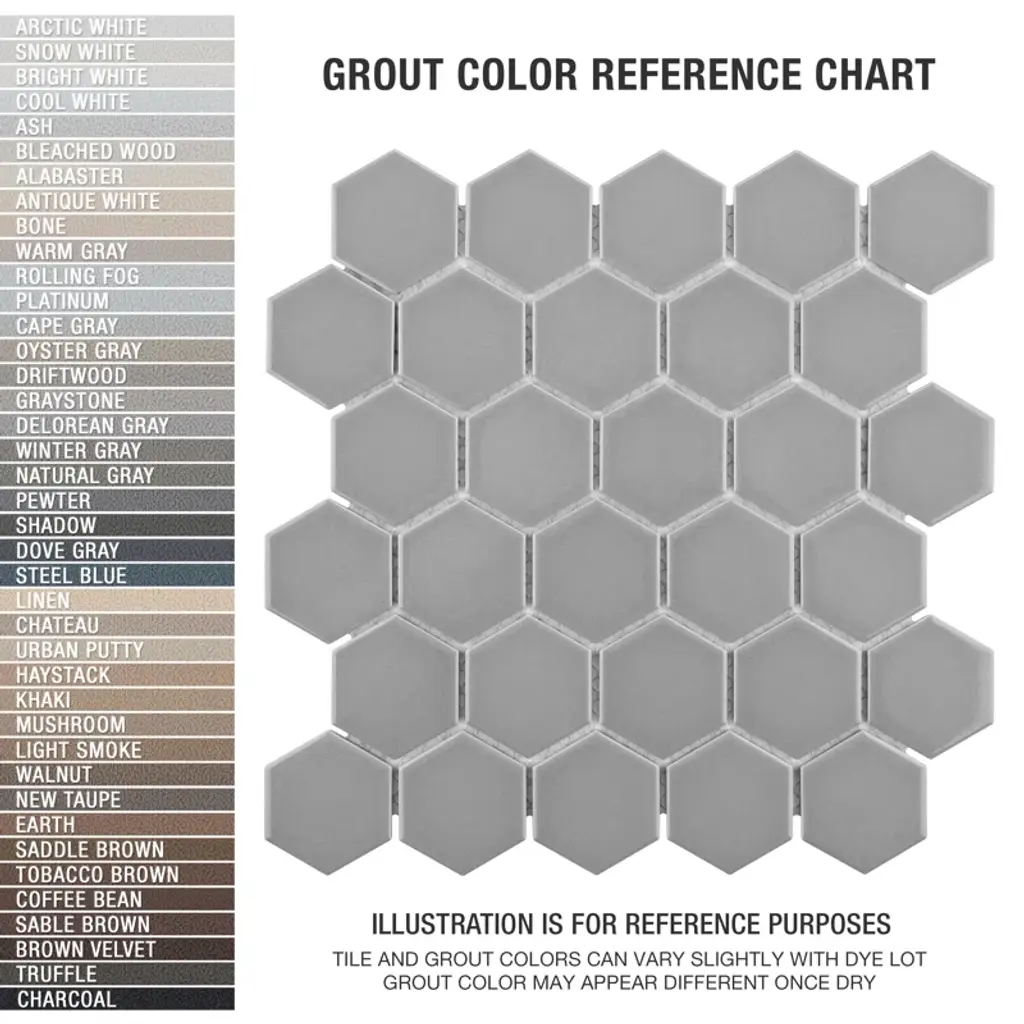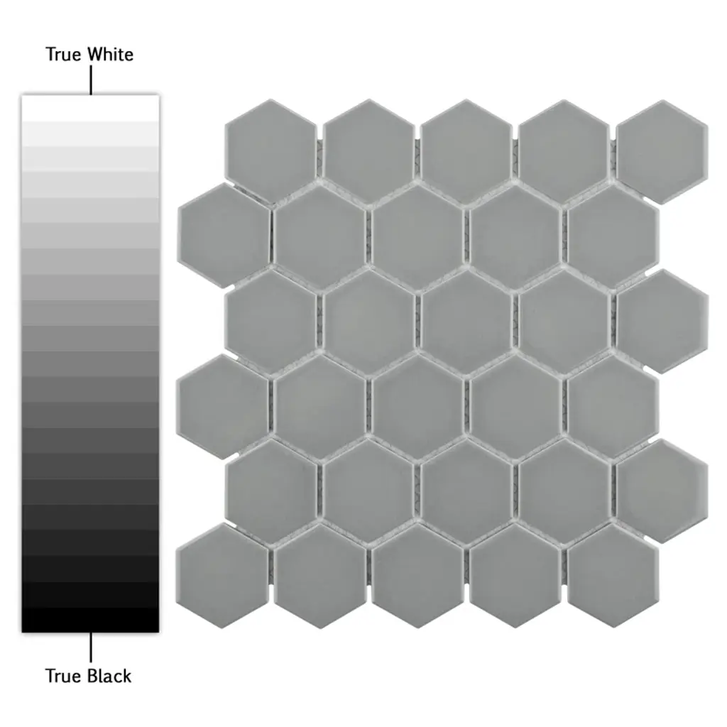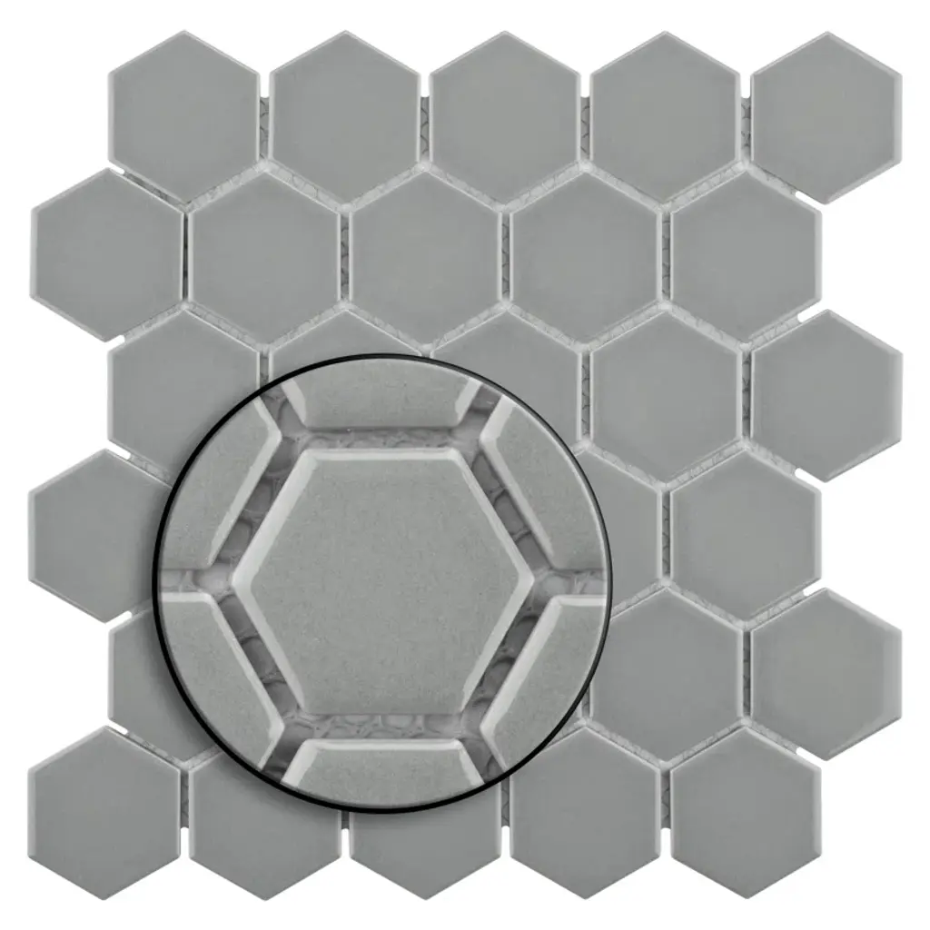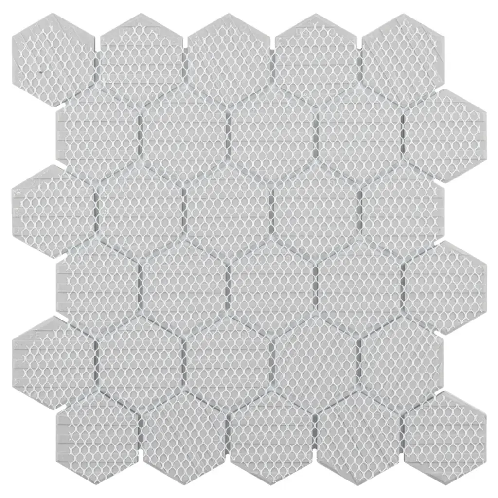 Transform your space into a tribute to retro design with our porcelain mosaic. As a modern, enlarged deviation from the classic hexagon mosaic, this fresh option is a throwback to traditional retro design with a contemporary feel. Glossy grey hexagons are precisely arranged on an interlocking mesh to create a seamless installation. This minimalistic geometric porcelain mosaic is unique yet simplistic enough to integrate into any design, ranging from traditional style renovations to modern home projects. Its impervious, frost-resistant, and durable features make this an ideal tile for both residential indoor and outdoor use, including backsplashes, bathrooms, kitchens, and patios. Tile is the better choice for your space. This tile is made from natural ingredients, making it a healthy choice as it is free from allergens, VOCs, formaldehyde, and PVC.