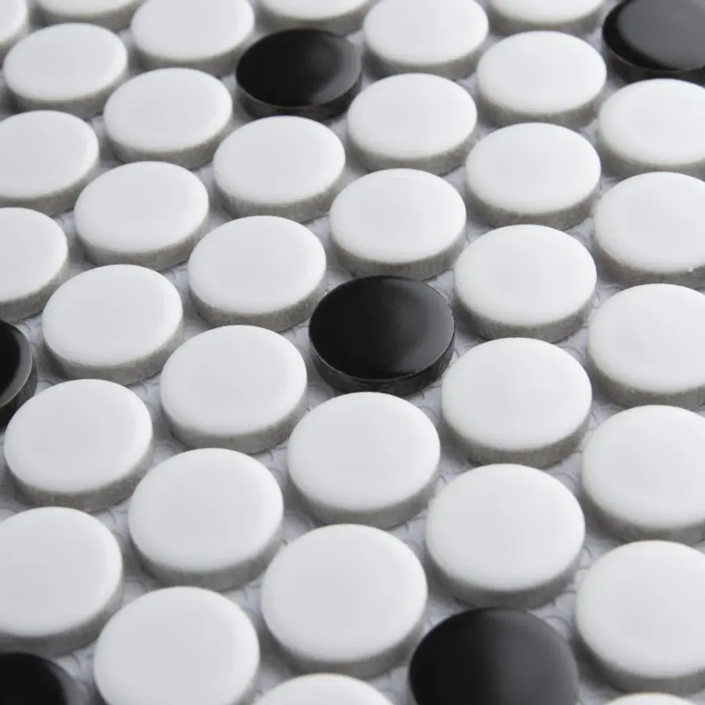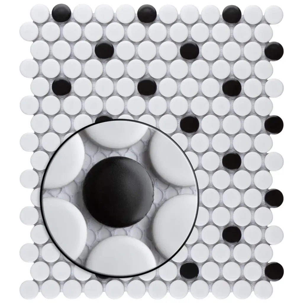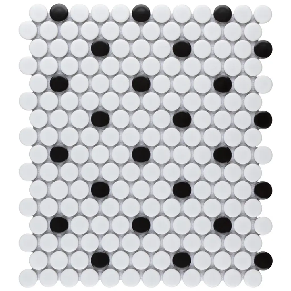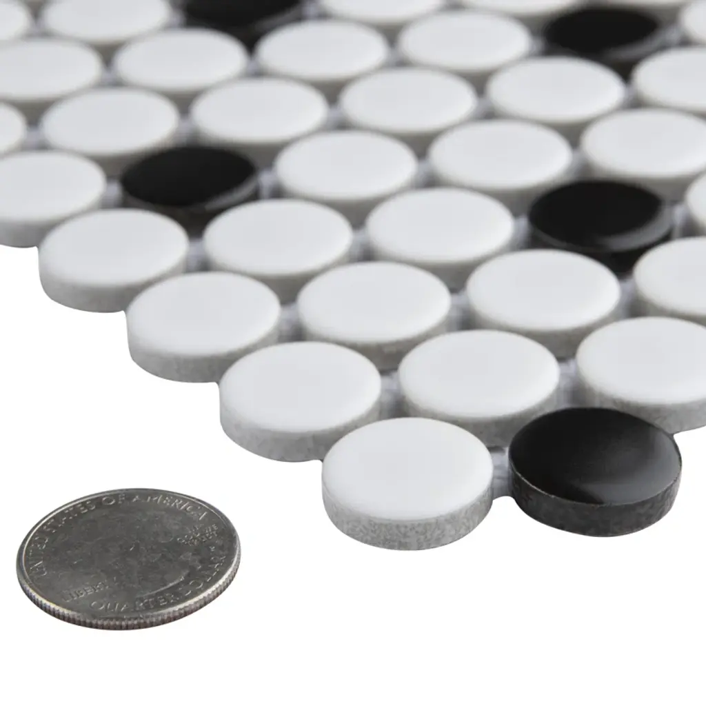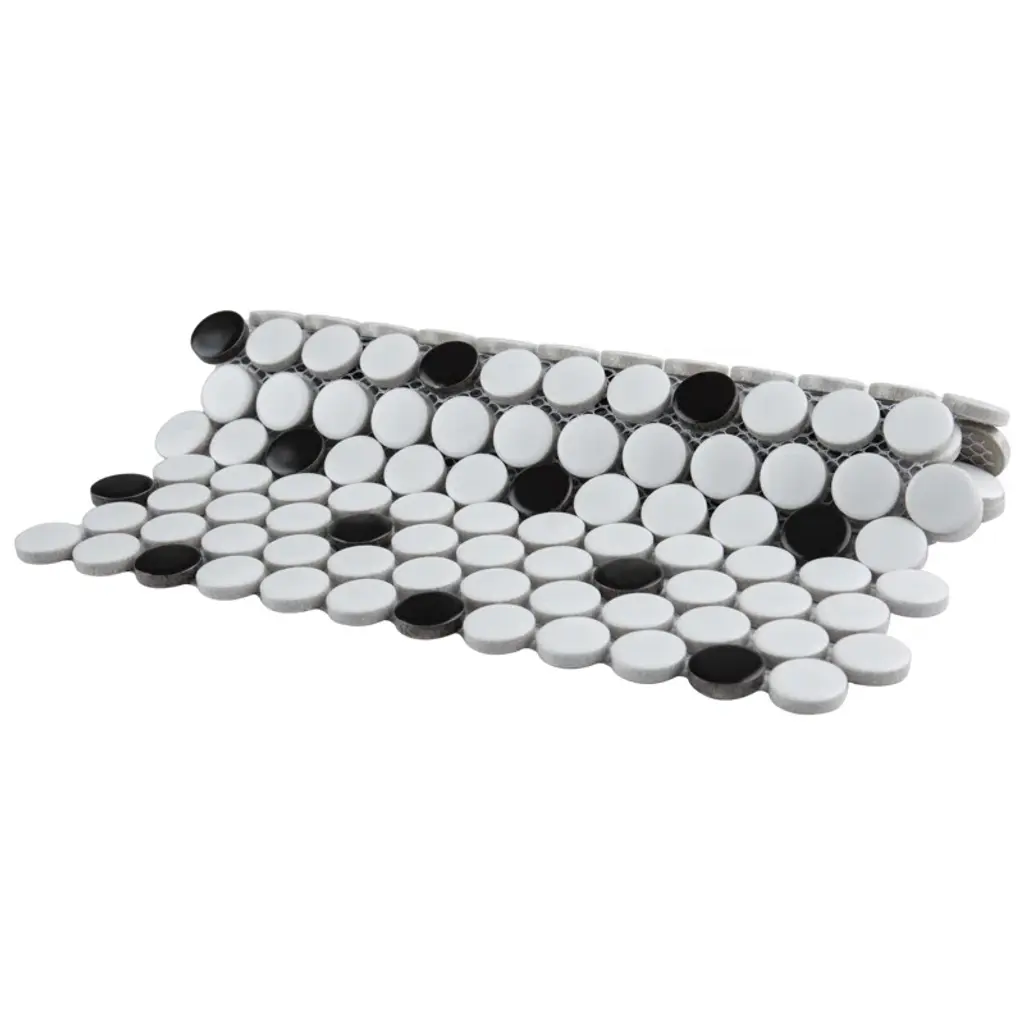 Elevate your space. These round porcelain mosaic tiles feature a penny round pattern and a matte textured finish. With resistance to mildew, stains, and freezing weather, they're perfect for floors and walls, indoors and out. Easy to clean with non-abrasive, neutral pH cleaner.