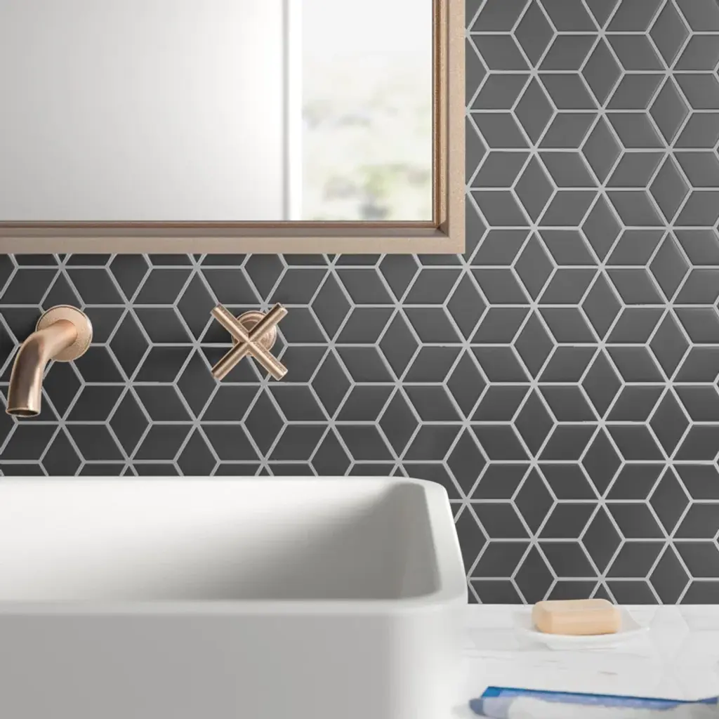 Real talk: Mosaic tiles like this make creating a fresh look in your space a breeze. Just line up the sheets, apply grout, and you're done. Easy. This sheet is crafted from porcelain with a mesh backing (hello easy mounting), and features a pattern of diamond tiles that work together to create hexagonal shapes. They're rated for heavy traffic, and resist water and mildew, so you can use them everywhere from your bathroom floors to your kitchen walls. Each sheet of tiles measures 10.5'' W x 12.13'' L, and they arrive in 10-piece cartons,