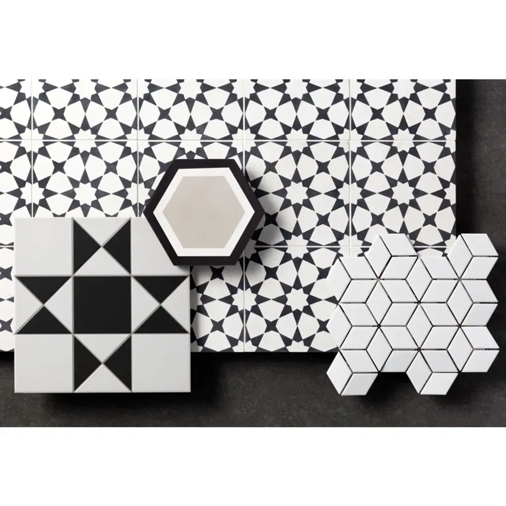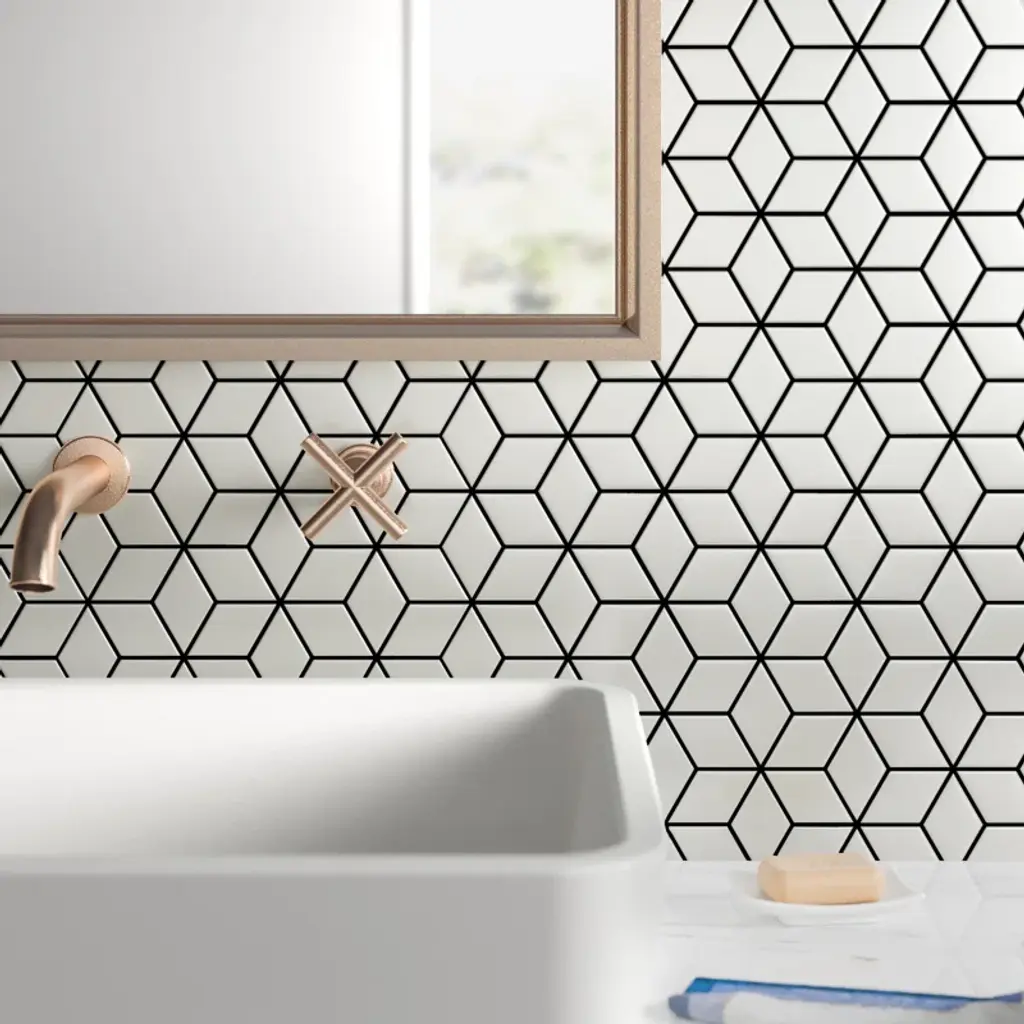 Real talk: Mosaic tiles like this make creating a fresh look in your space a breeze. Just line up the sheets, apply grout, and you're done. Easy. This sheet is crafted from porcelain with a mesh backing (hello easy mounting), and features a pattern of diamond tiles that work together to create hexagonal shapes. They're rated for heavy traffic, and resist water and mildew, so you can use them everywhere from your bathroom floors to your kitchen walls. Each sheet of tiles measures 10.5'' W x 12.13'' L, and they arrive in 10-piece cartons,