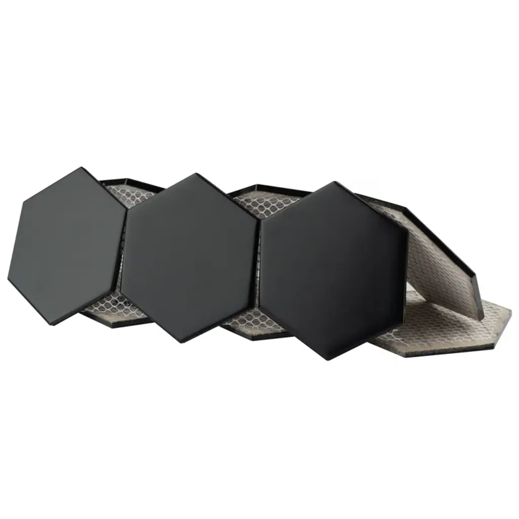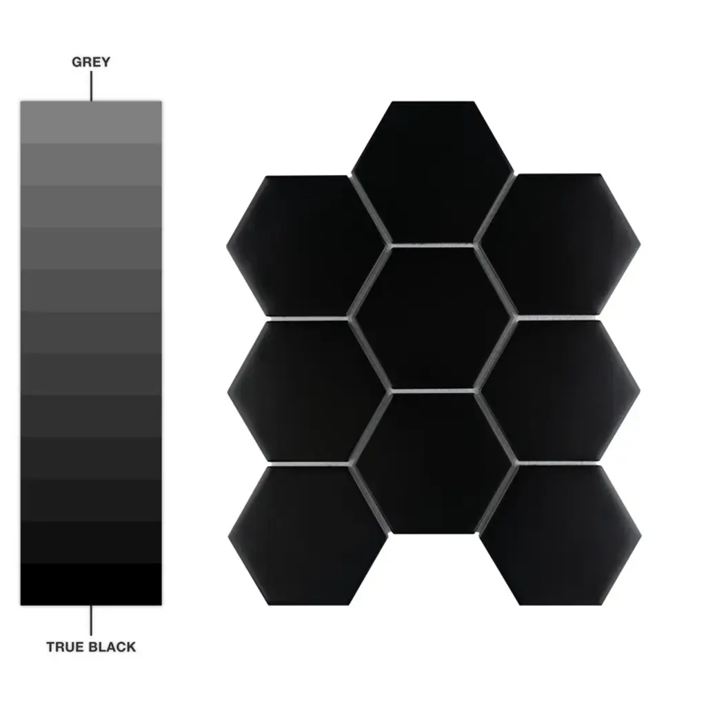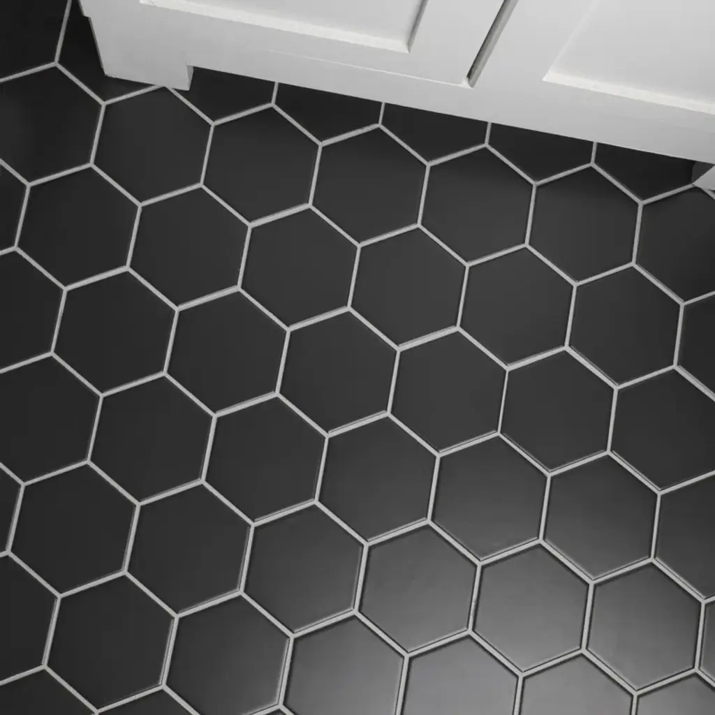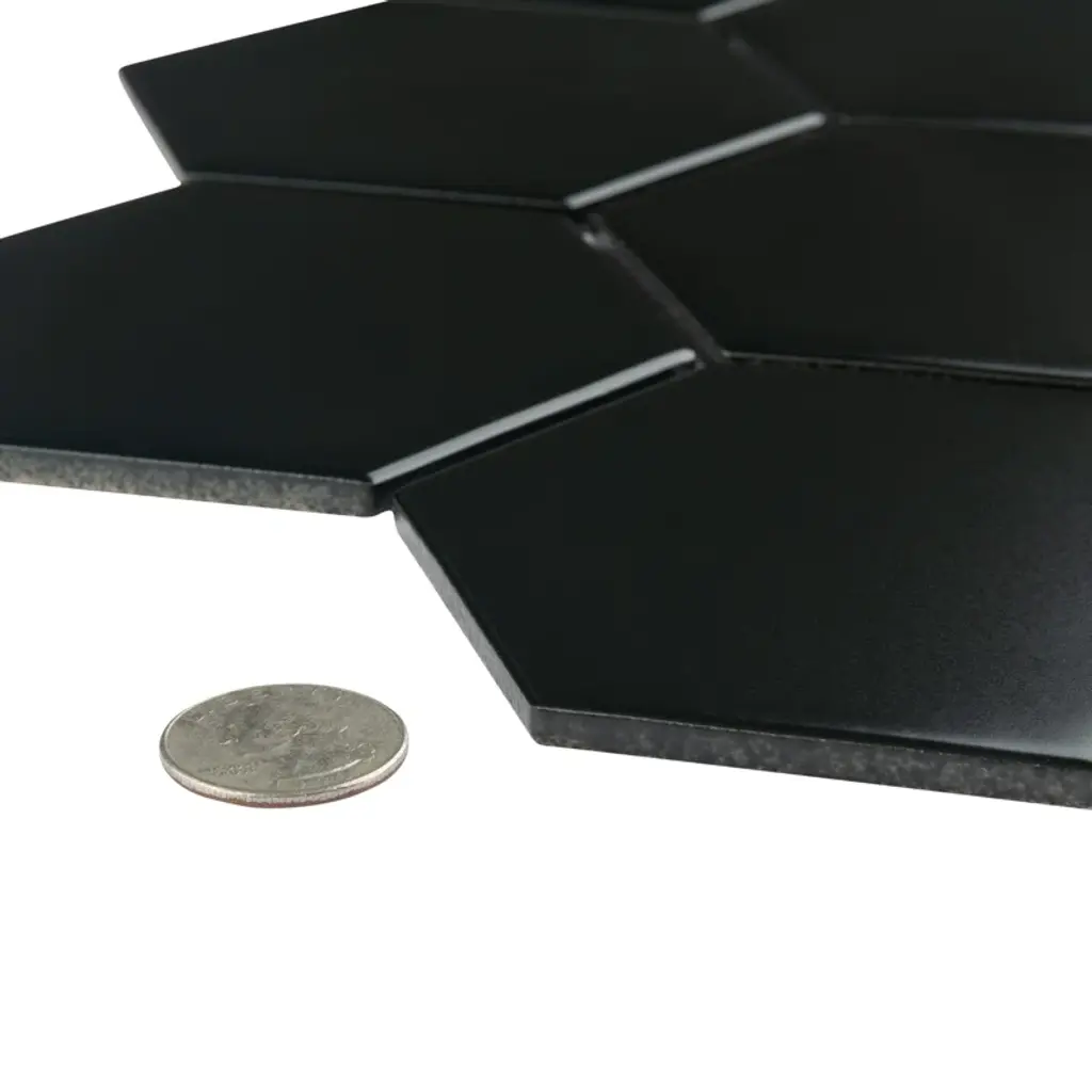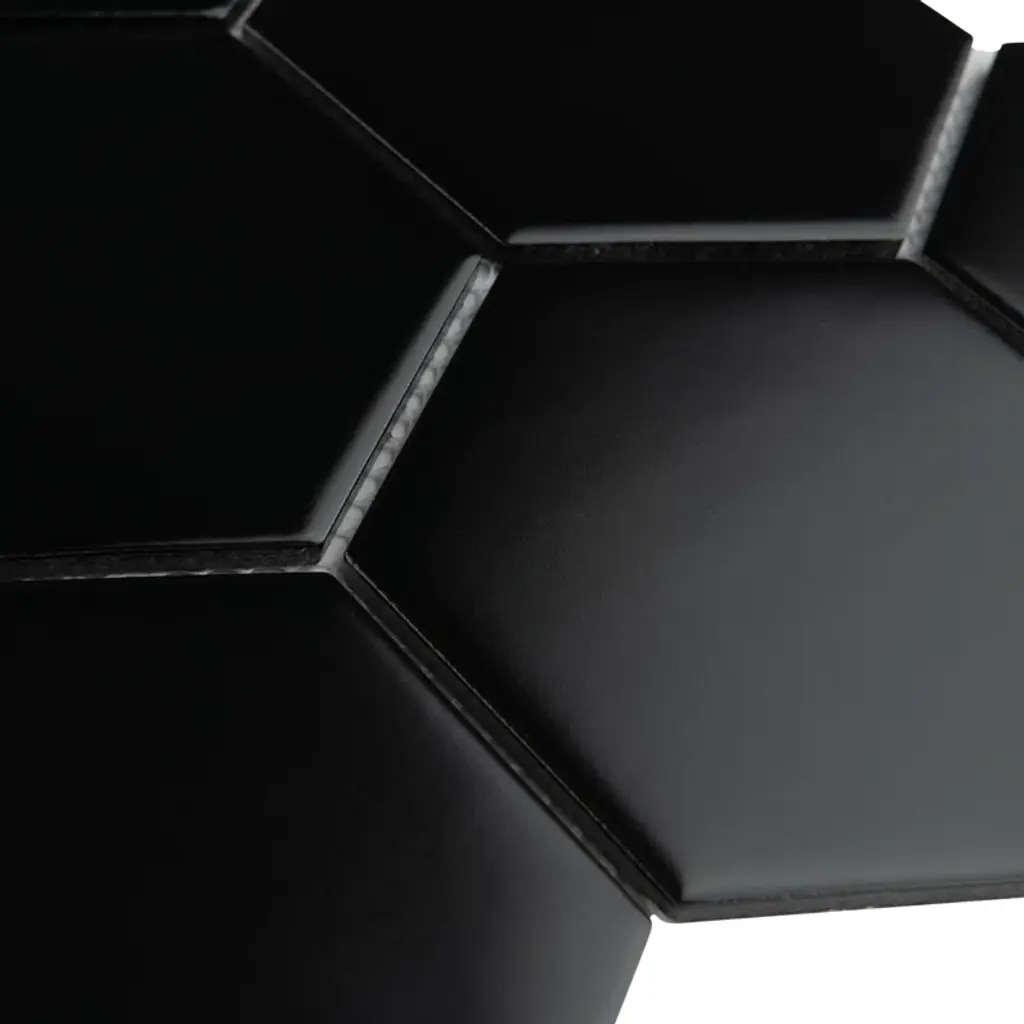 Transform your space into a tribute to retro design with our Metro Super Hex 4" Matte Black Porcelain Floor and Wall Mosaic Tile. As a modern, enlarged deviation from the classic hexagon mosaic, this fresh option is a throwback to traditional retro design with a contemporary feel. Matte black porcelain hexagons are arranged on an interlocking mesh to create a seamless installation. This minimalistic geometric floor and wall mosaic is unique yet simplistic enough to integrate into any design, ranging from traditional-style renovations to modern home projects. Its impervious and frost-resistant features make this an ideal tile for indoor and outdoor installations including kitchens, bathrooms, backsplashes, showers, and fireplace facades. Tile is the better choice for your space. This tile is made from natural ingredients, making it a healthy choice as it is free from allergens, VOCs, formaldehyde, and PVC.