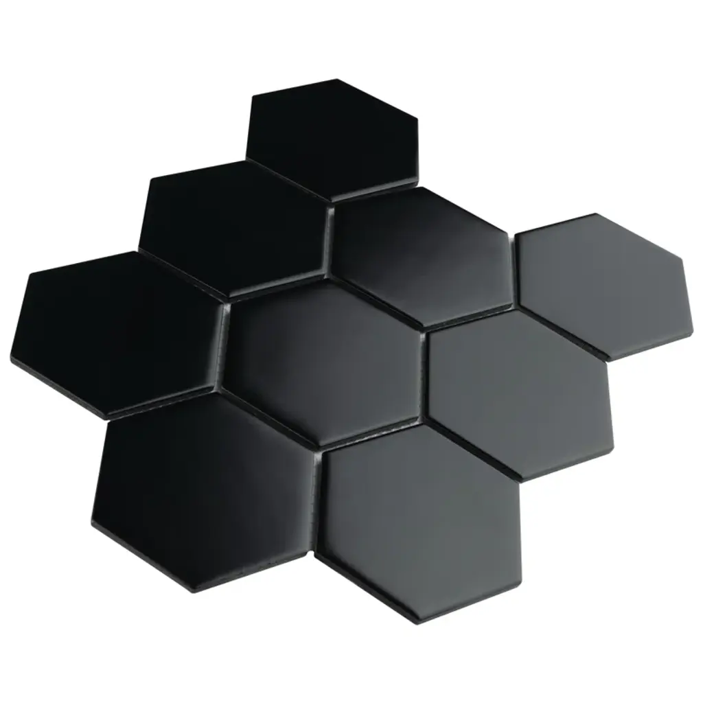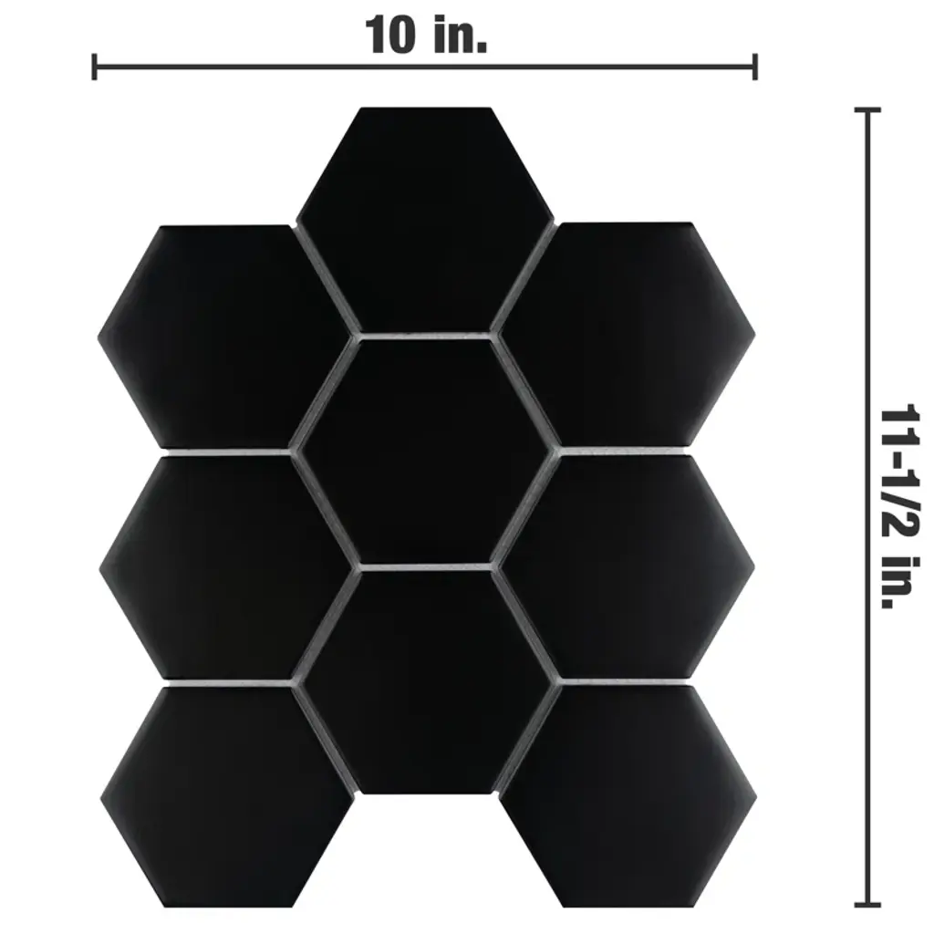 Metro Super 4" Hex Matte Black 10" X 11-1/2" Porcelain Mosaic Tile