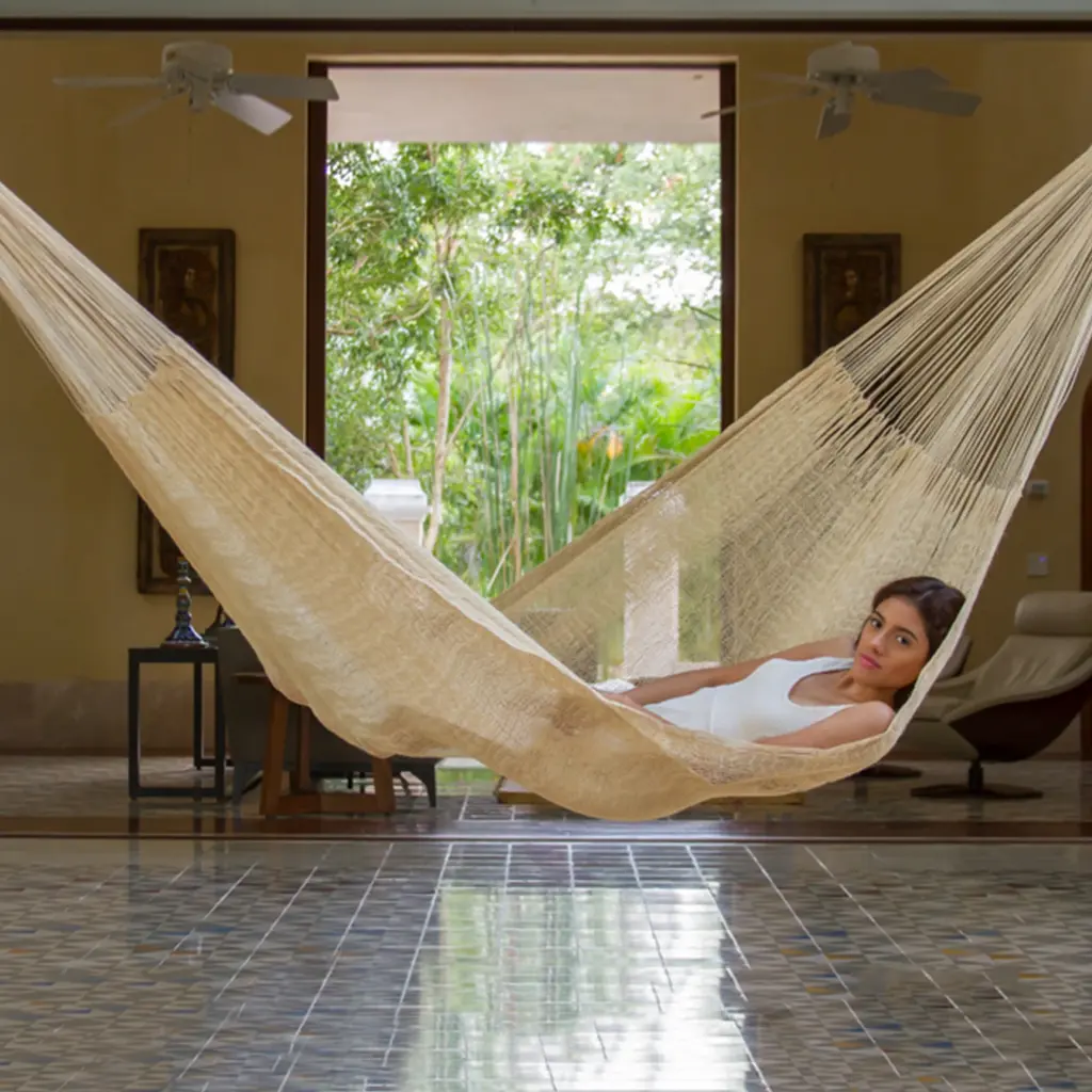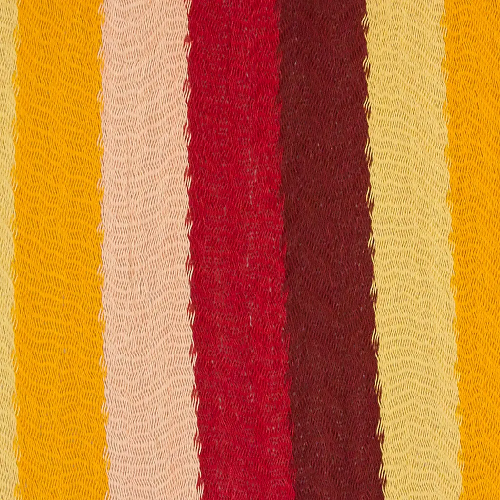 Maya Artists of the Yucatán weave shades of red, burgundy, pink and yellow into a bright and comfortable hammock. Artisans preserve the traditional hand-weaving techniques first developed by Maya ancestors to craft this inviting hammock.Long before the Spanish arrived upon the coasts of the Yucatan Peninsula, the Maya preferred to sleep and rest in hammocks. They considered the hammock to be like the loving embrace of a mother, due to the comfortable manner in which the body is held and swung within its cradle. Maya Artists of the Yucatan seek to preserve time-honored customs while also offering stylized versions of the original Maya hammock. For them, the hammock is a work of art. Their hammocks are incredibly comfortable, easy to maintain, and may be stored just about anywhere. Please note: The accompanying extension ropes may vary in color from those shown in the images.Please note: For best results, store indoors when not in use. Colors may bleed when wet. NOTE: Because each is woven individually by hand, measurements may vary by as much as ten centimeters. There may be slight color variations from hammock to hammock.