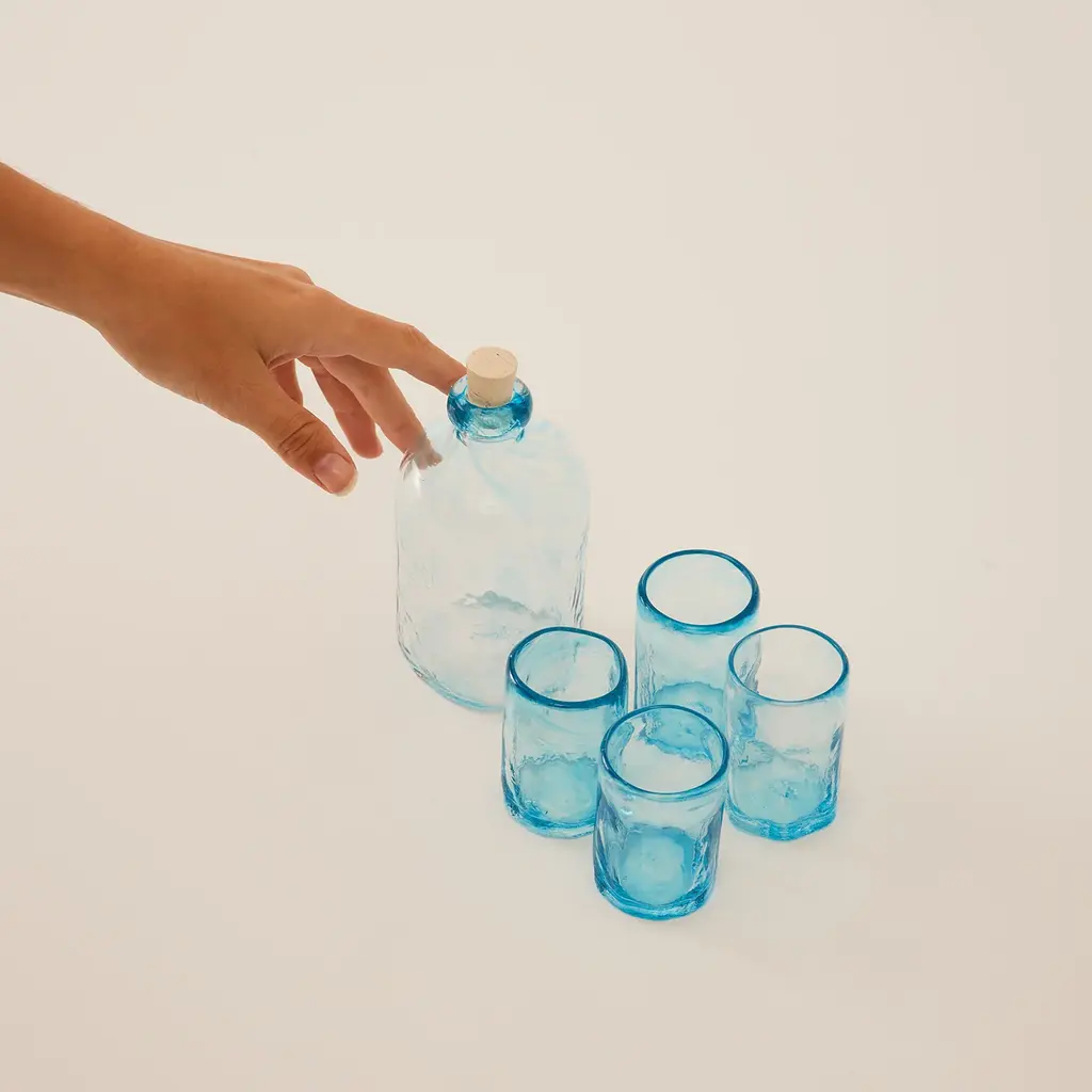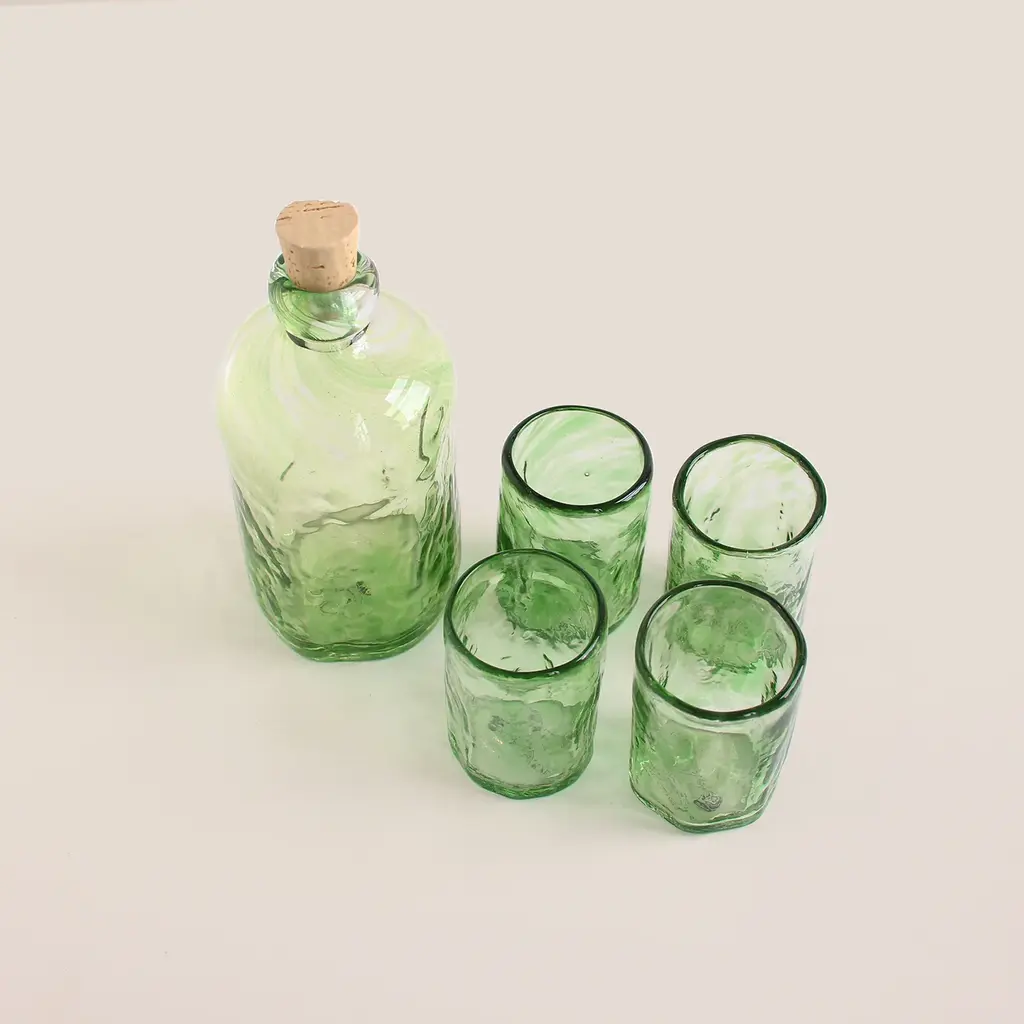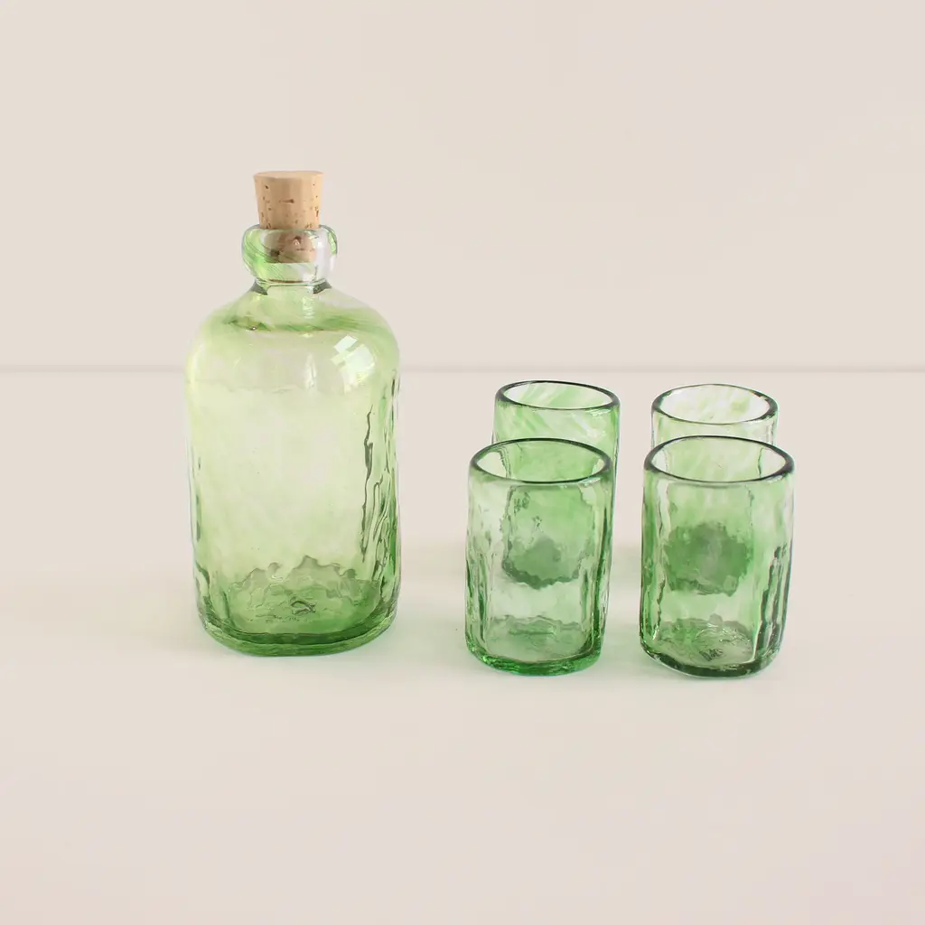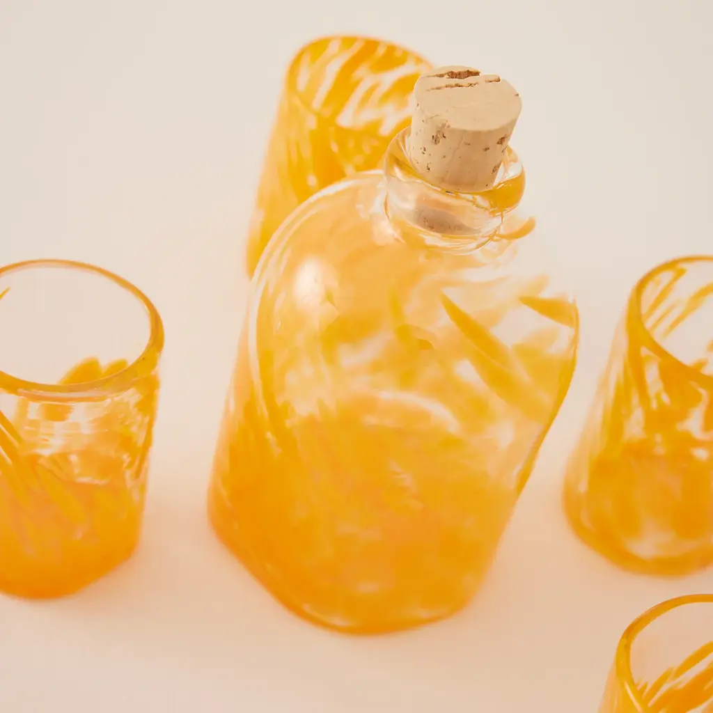 If you’re seeking a colorful glassware set that will look equally at home on a holiday table as on a relaxed summer evening outside, you’ve found your perfect match. Sustainably hand-blown in Oaxaca using recycled glass from local villages, this superb Xaquixe ensemble exclusive to Goodee will bring joy to any occasion with its organic silhouette, durable construction, and sustainable credentials. Each Xaquixe glassware piece is blown by hand making each item unique. * This set includes one carafe with a cork stopper and four tumblers.