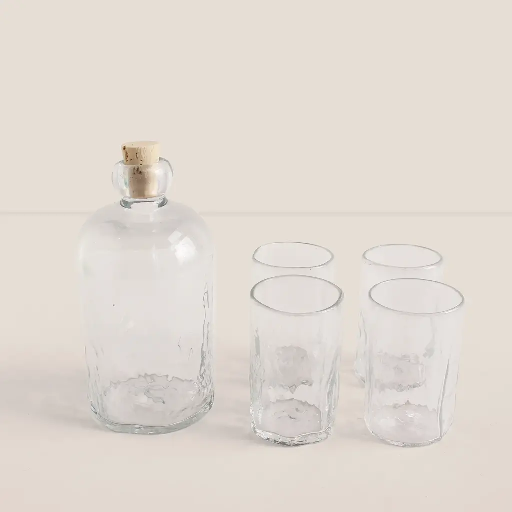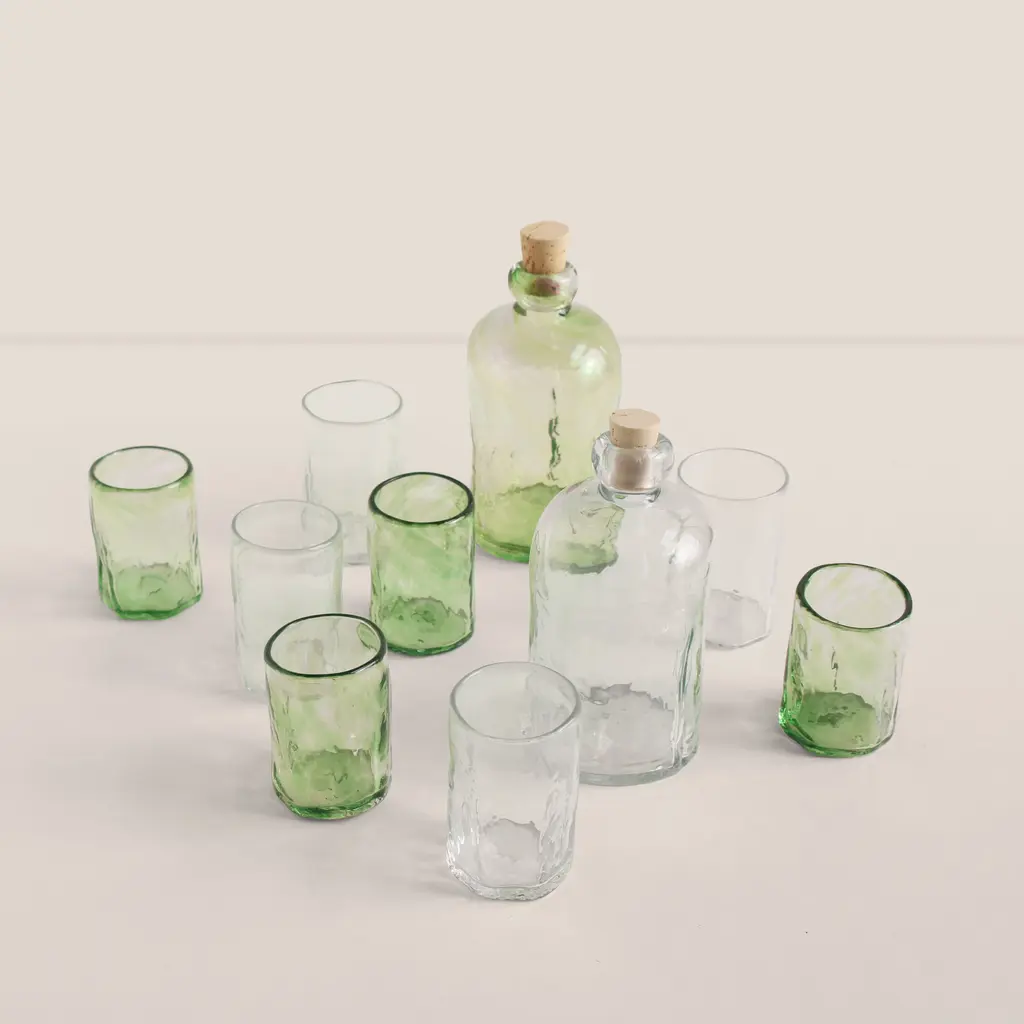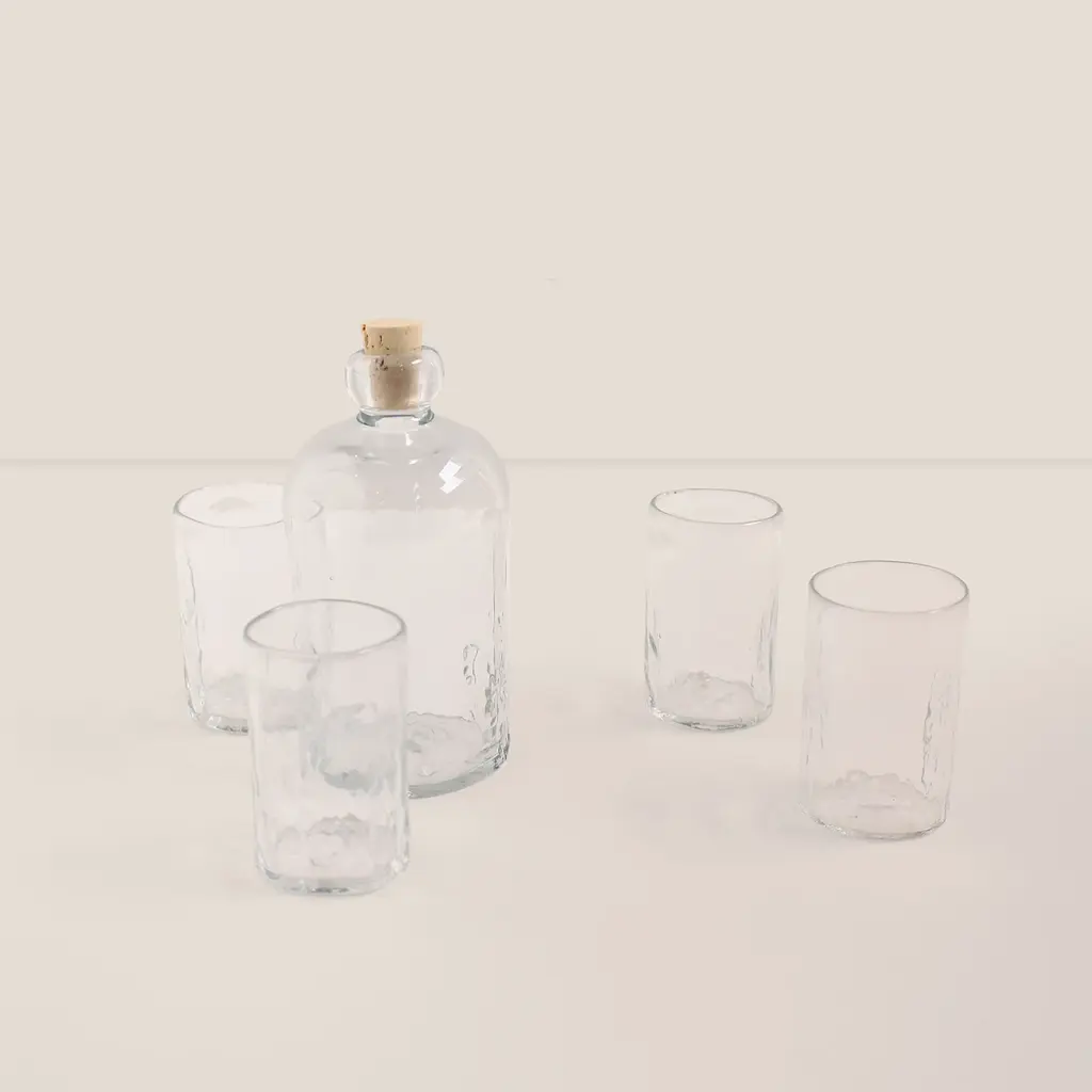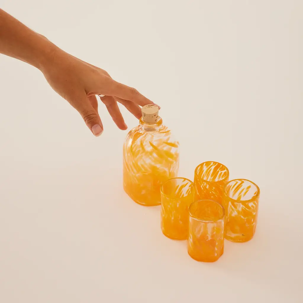 If you’re seeking a colorful glassware set that will look equally at home on a holiday table as on a relaxed summer evening outside, you’ve found your perfect match. Sustainably hand-blown in Oaxaca using recycled glass from local villages, this superb Xaquixe ensemble exclusive to Goodee will bring joy to any occasion with its organic silhouette, durable construction, and sustainable credentials. Each Xaquixe glassware piece is blown by hand making each item unique. * This set includes one carafe with a cork stopper and four tumblers.