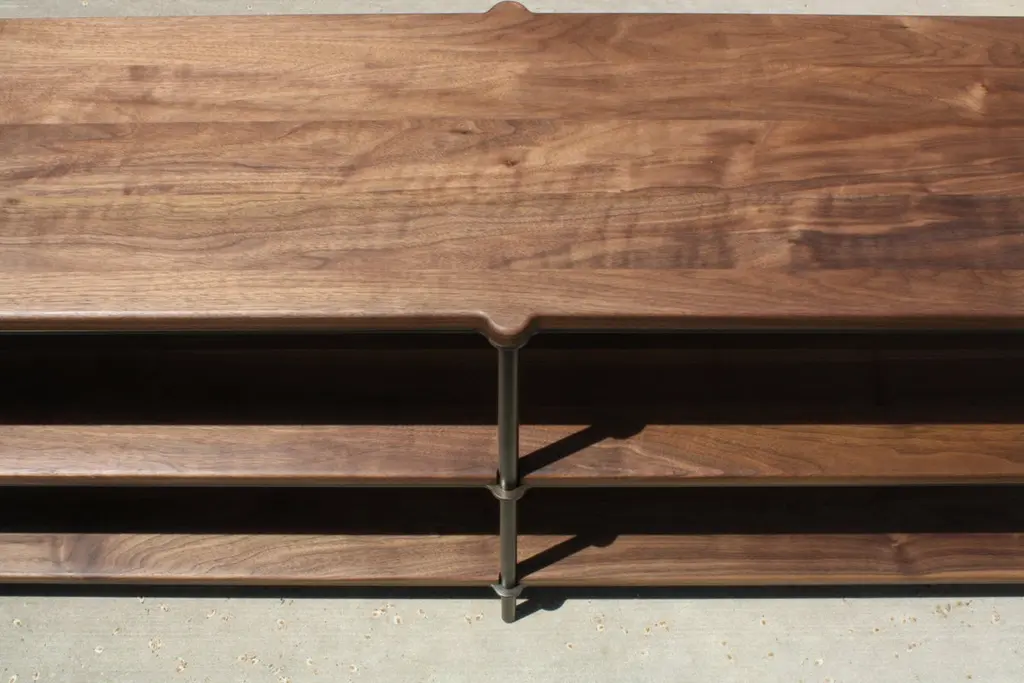 Mezzo Shelving by Laylo StudioDimensions: D 45.7 x W 167.6 x H 73.6 cm.Materials: Blackened steel, walnut.LAYLO is the practice of Sam and Lydia Link. Founded with the intention of building through the exploration and integration of traditionally siloed crafts, the partners design and independently produce limited edition, functional works in their Chicago workshop using both contemporary and age-old equipment and techniques.Sam and Lydia are deeply committed to creating each piece themselves, believing firmly that this hands-on approach imbues their creations with a tangible essence of their presence as both artisans and artists.Their work is a testament to their dedication and passion, an ode to the meticulous and diligent process of creation. They adopt a "slow-cooker" approach to design and manufacturing, a deliberate counter-narrative to the relentless 24/7 production schedule that has dominated the market since the mid-19th century referencing the contrarian Arts and Craft and Studio Craft movement that emerged. As a result of their methods, each piece in their collection is not merely an object but a narrative of Sam and Lydia’s personal journey through the manual manipulation of materials. Their work is informed not just by their own creative visions but also by external references that guide their labor. In an age of mass production, LAYLO stands out as a beacon of individuality and craft, offering pieces that are not just made but are brought into existence with intention, care, and a profound connection to the history and significance of making.