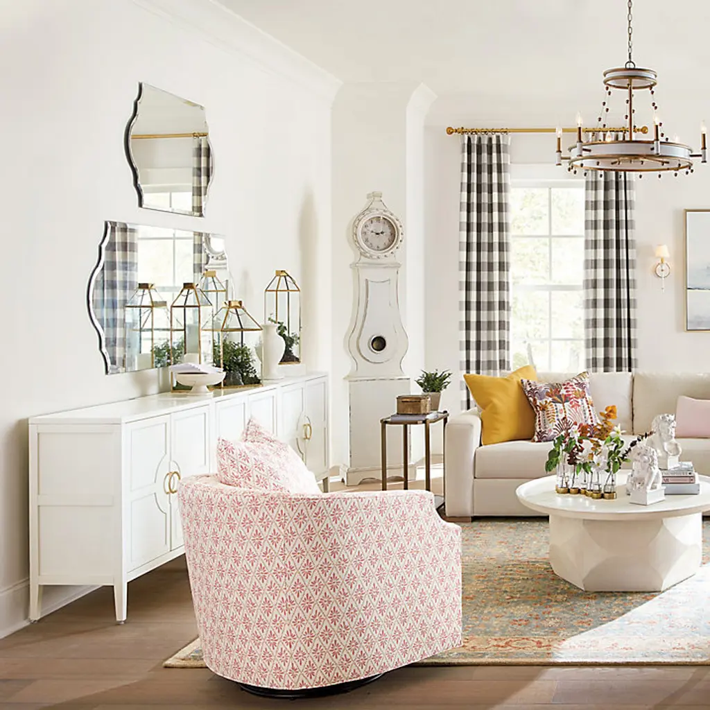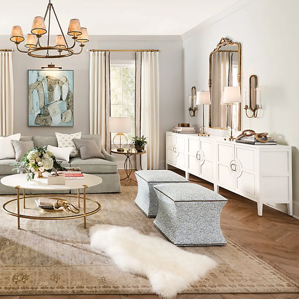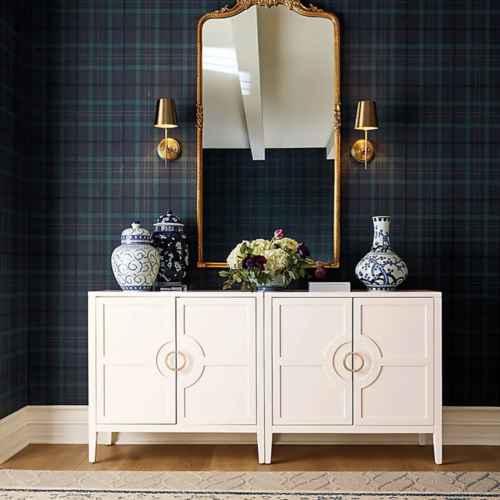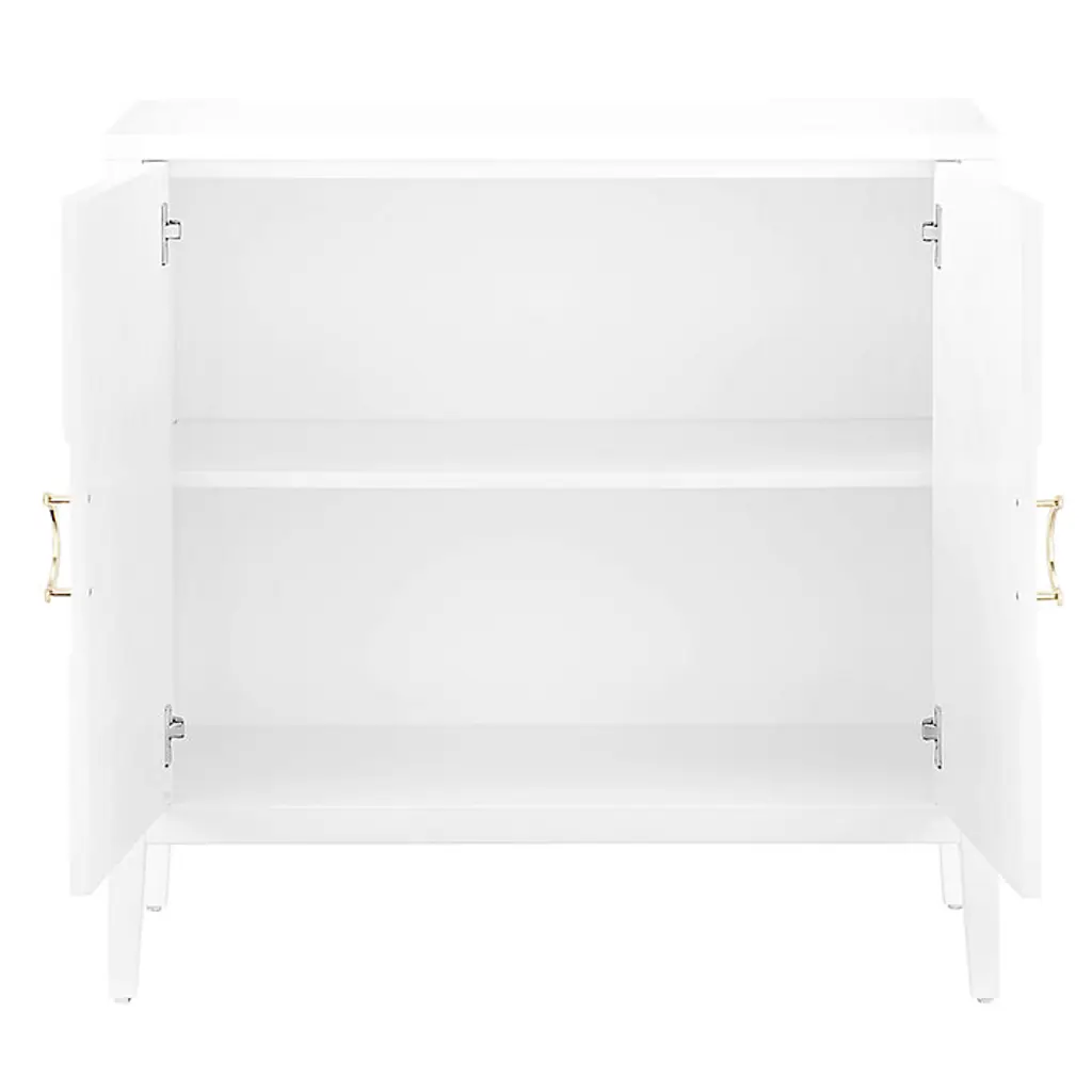 Hollywood Regency glamour for the dining room, media room or bedroom. Our Mia Console is beautifully crafted with inset panel doors designed to draw your eye to the satin brass half-moon pulls at its centers. Hidden European hinges preserve the elegant lines. Our Mia 4 or 6 door consoles are created by nestling two or three cabinets side-by-side creating a long sideboard, double console, or extended media cabinet. Mia Console features: