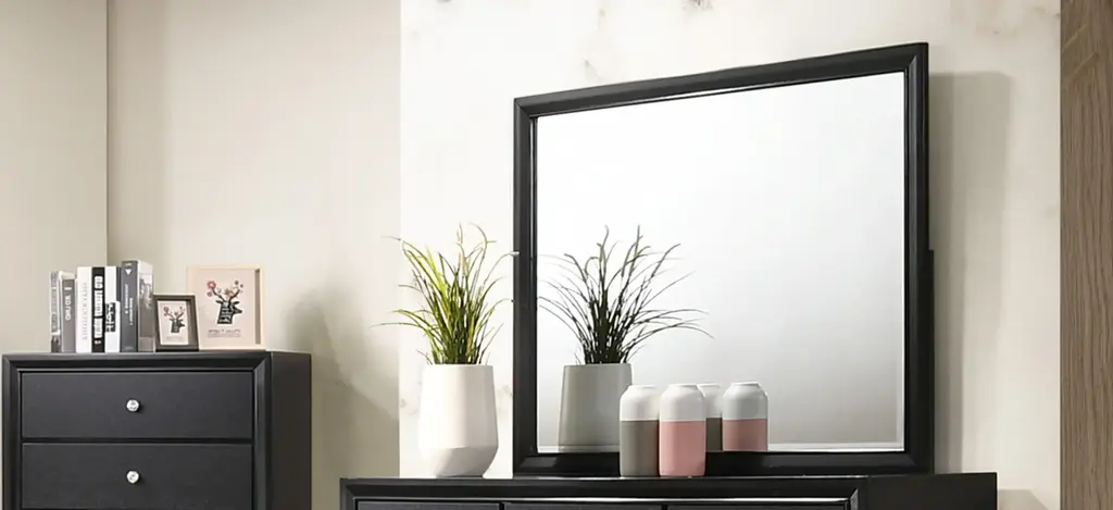 Be on the cutting edge of trends with the Micah Bedroom Dresser Mirror. It's perfect to show off your fun side. You'll love the glamorous design with its sleek black finish. Imagine the fun your future holds when you dream in style.