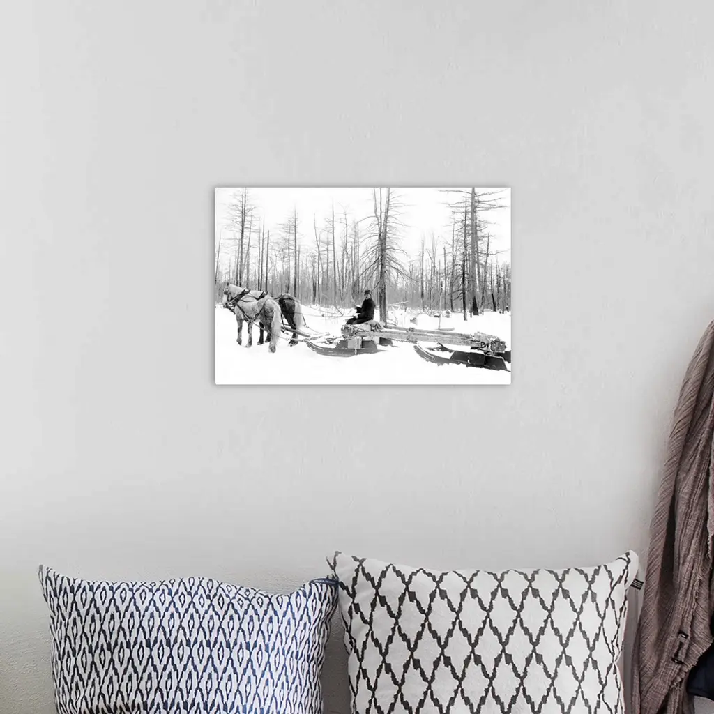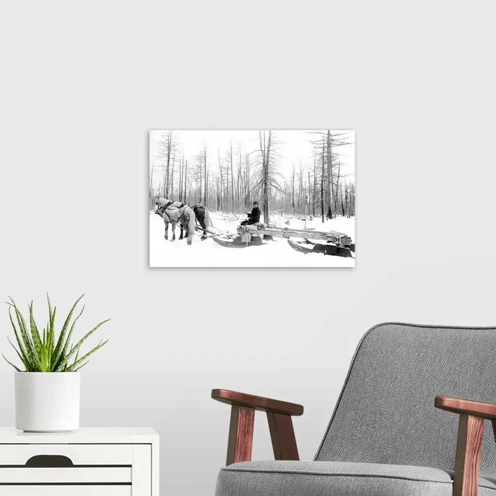Michigan, Lumbering. A Lumberjack Logging With Horsedrawn Sled During the Winter In Michigan. Photograph, c1880-1899.