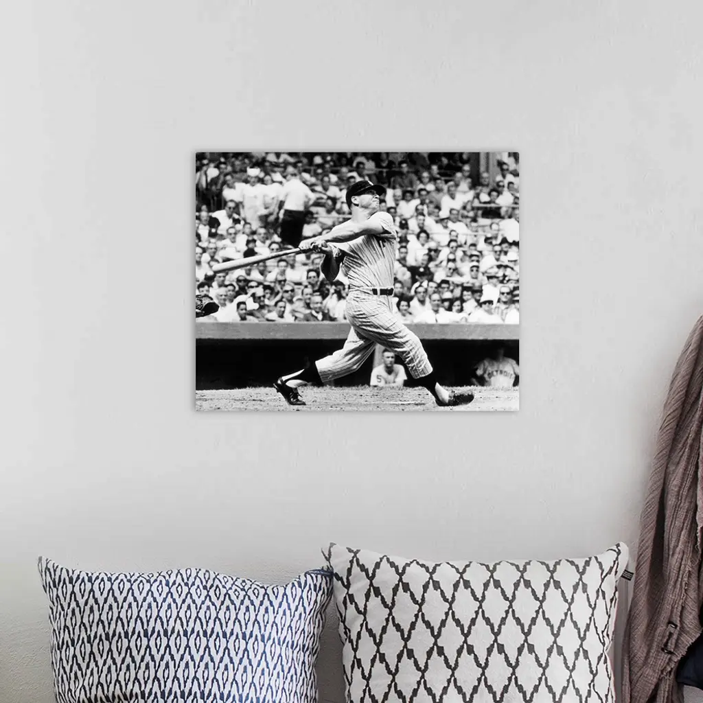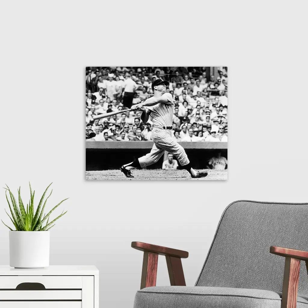 American baseball player. As a member of the New York Yankees, hitting his 49th home run of the season against the Detroit Tigers at Yankee Stadium in the Bronx, New York City, 3 September 1961.