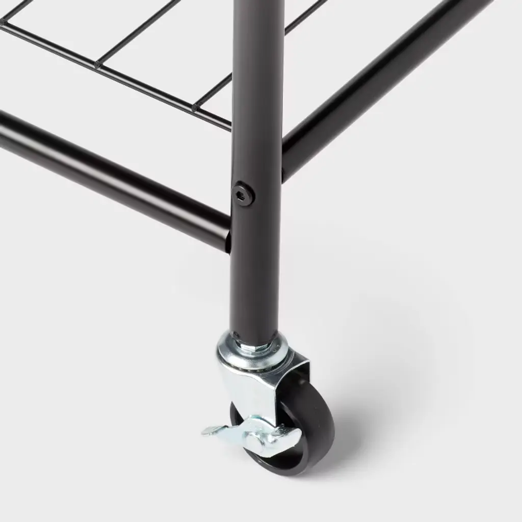 Efficiently manage your kitchen or pantry space with this Microwave Storage Cart from Brightroom™. Made of metal, this microwave cart has a top shelf to place the microwave or oven and two wired shelves to store instant foods, snacks, biscuits, plates, bowls, and more. Plus, this black storage cart features inbuilt handles and four castor wheels for easy portability from one room to another. Brightroom™: See your space in a new light.