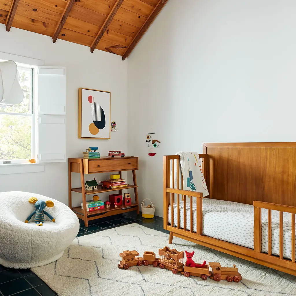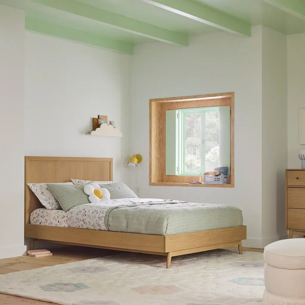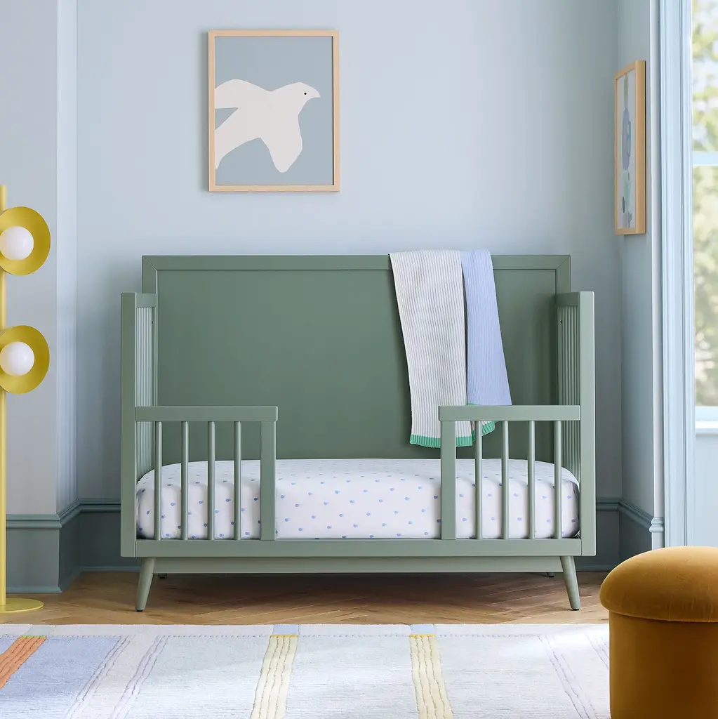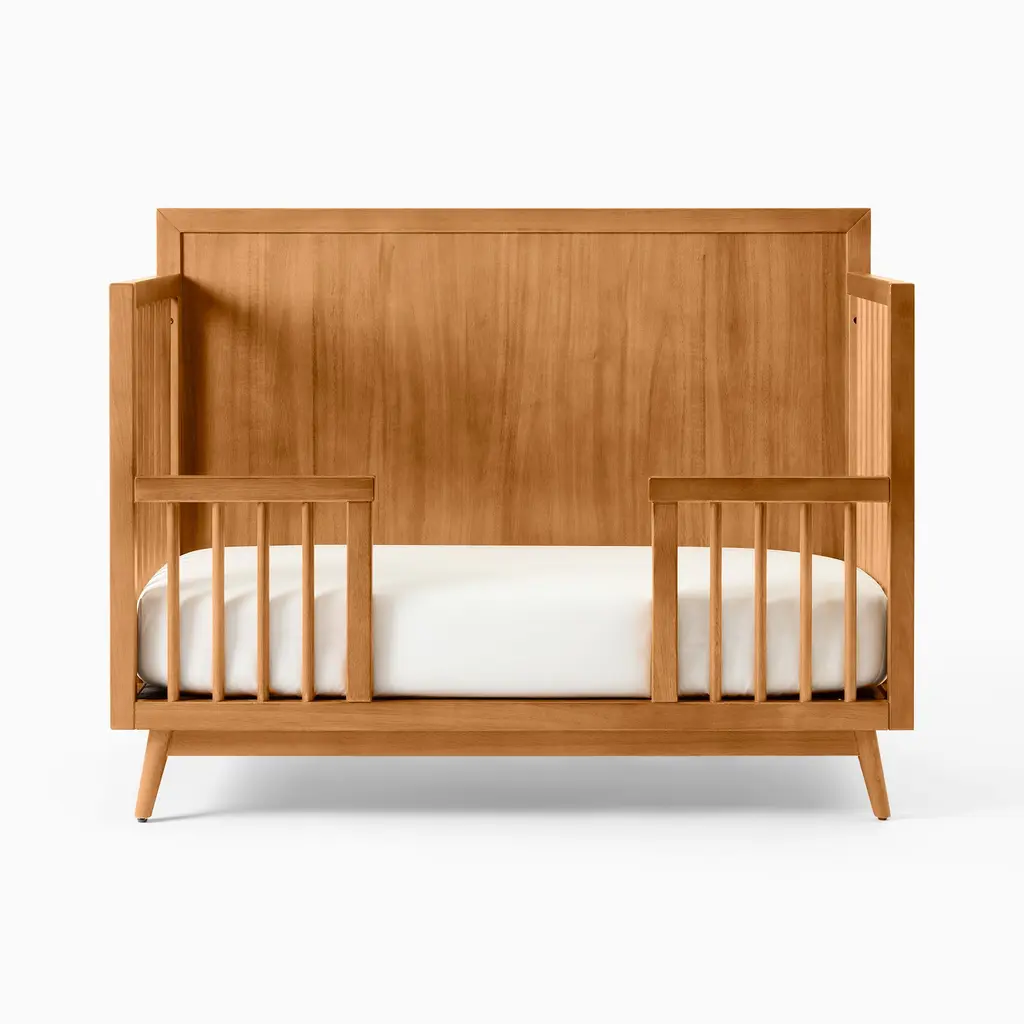 Converts our Mid-Century Crib to a toddler or full-sized bed. Can grow with your child—from toddler to teen. Durably made with sustainably sourced wood. GREENGUARD Gold Certified as being low VOC.