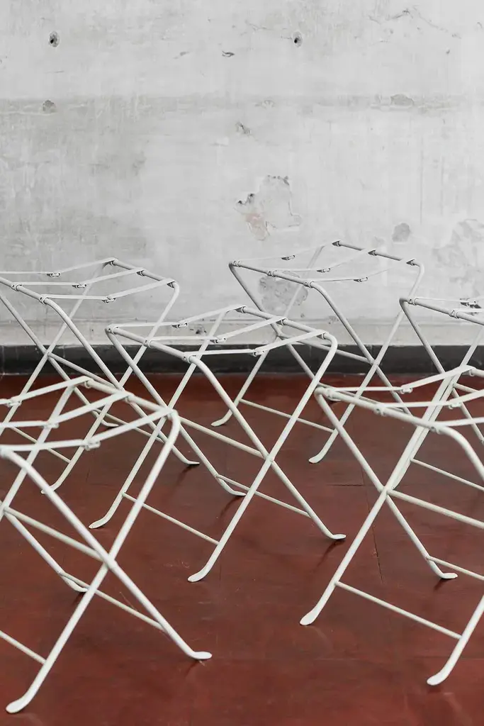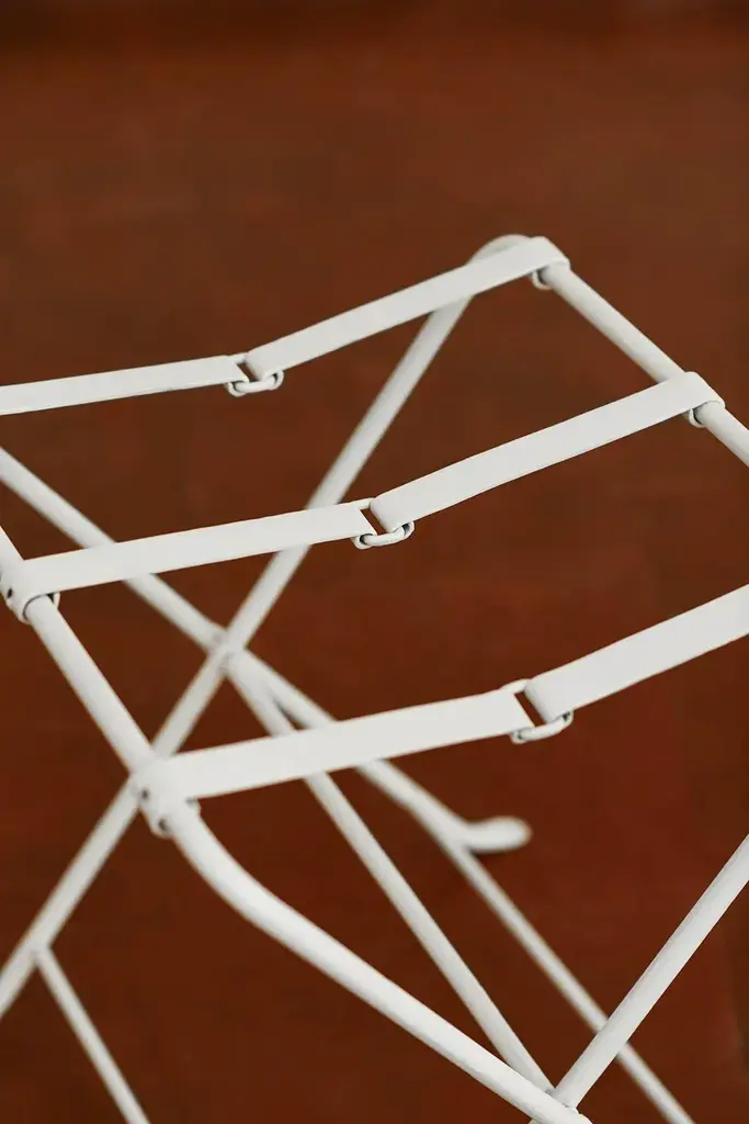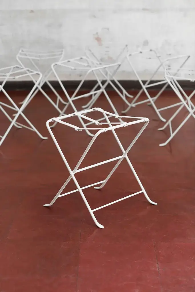 Foldable Mid-Century Luggage Racks (to arrange suitcases) in white enameled metal Dimensions 40 W × 52 H × 46 D cm