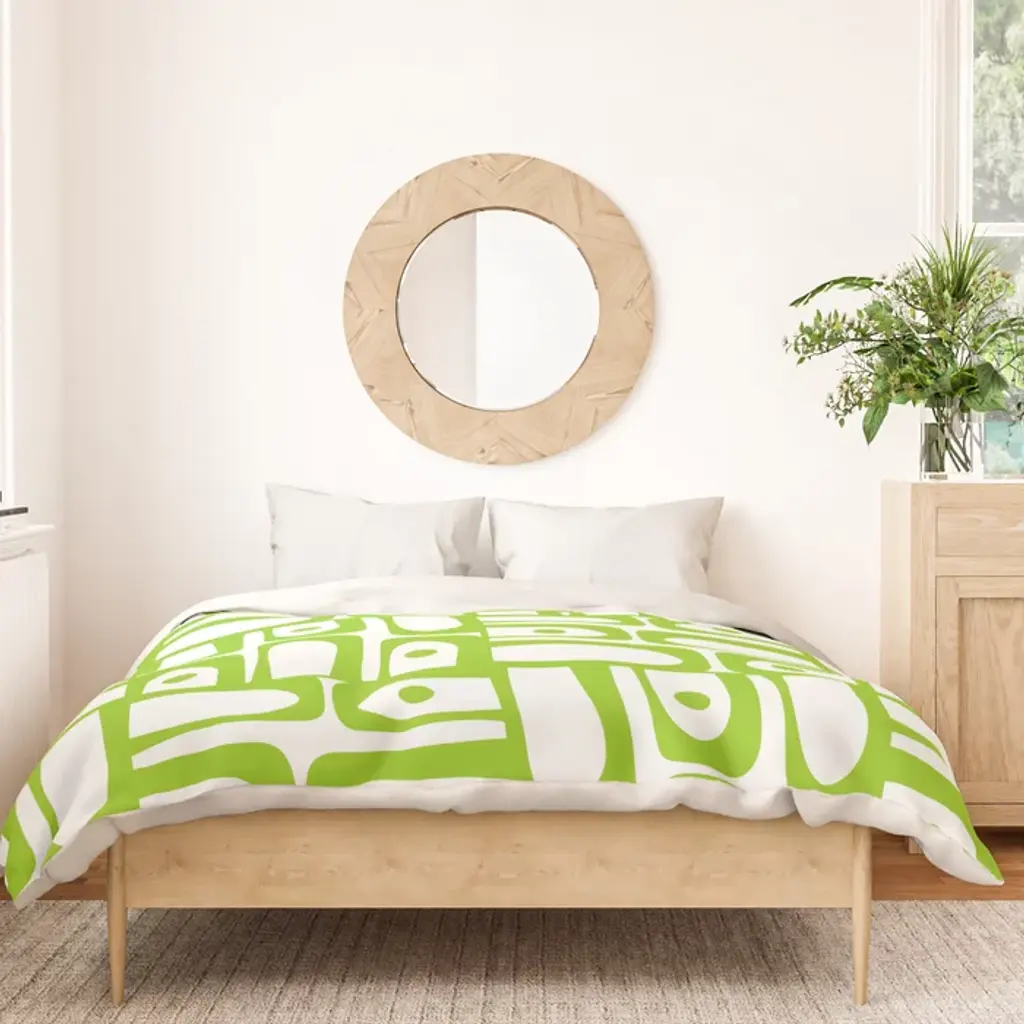 Mid Century Modern Abstract Lime Green And White Piquet Multi Pattern Duvet Cover