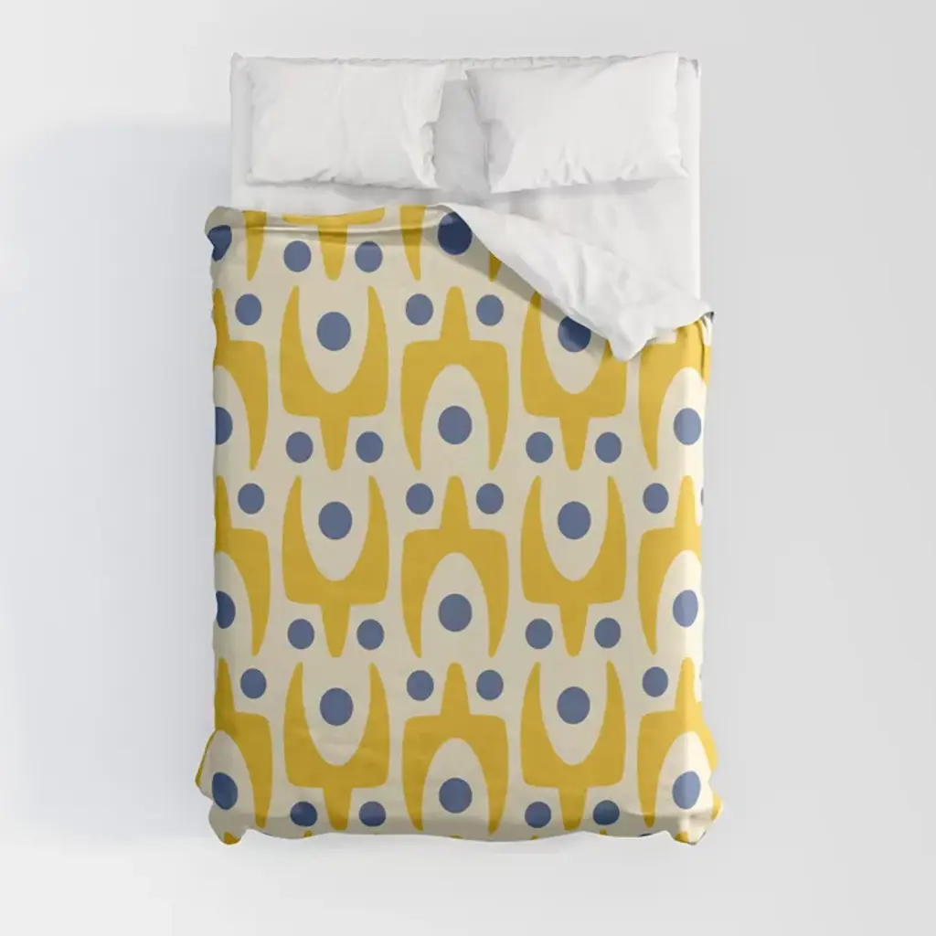 Mid Century Modern Abstract Pattern 641 Googie Yellow And Blue Comforter