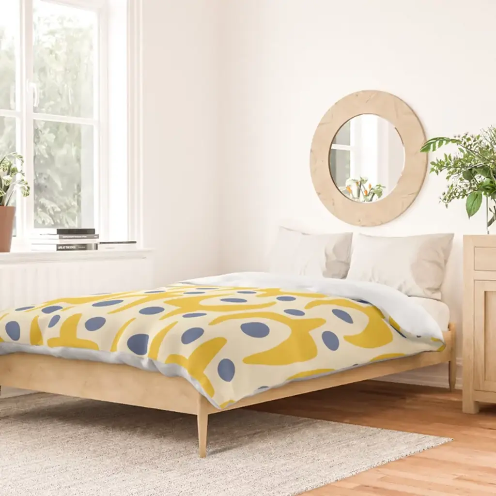 Mid Century Modern Abstract Pattern 641 Googie Yellow And Blue Duvet Cover