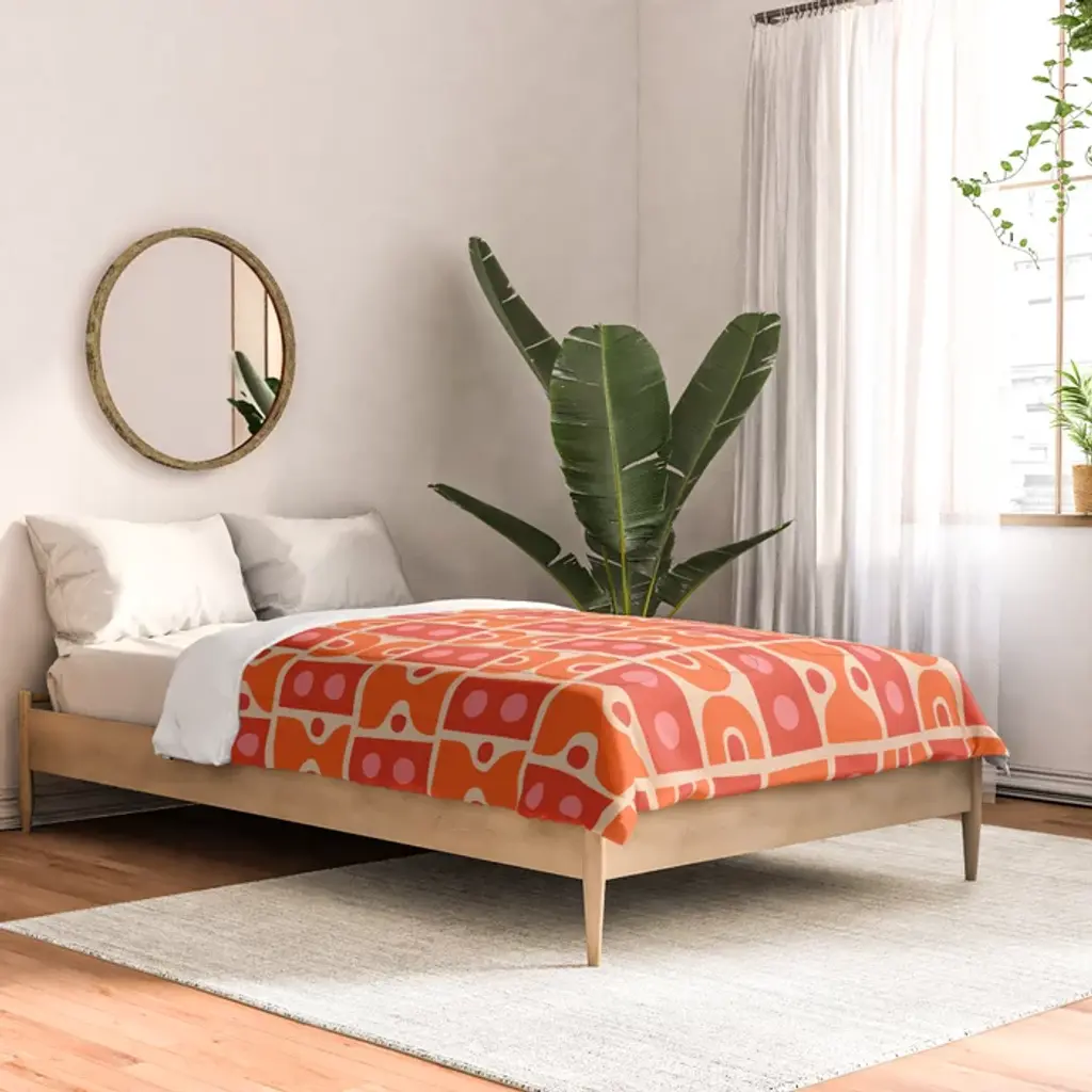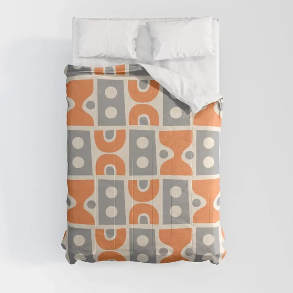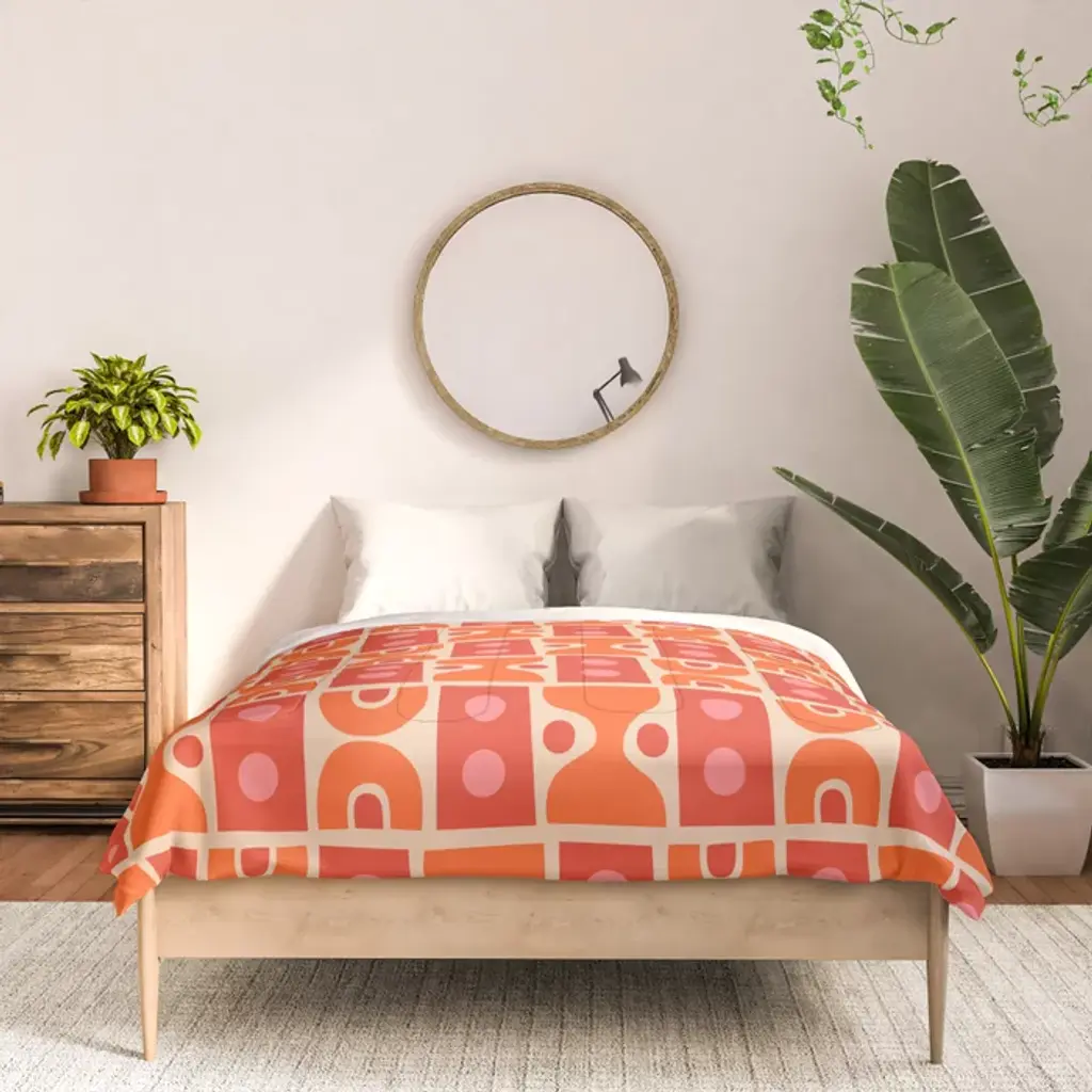 Mid Century Modern Abstract Pattern 721 Mid Mod Orange & Red Comforter