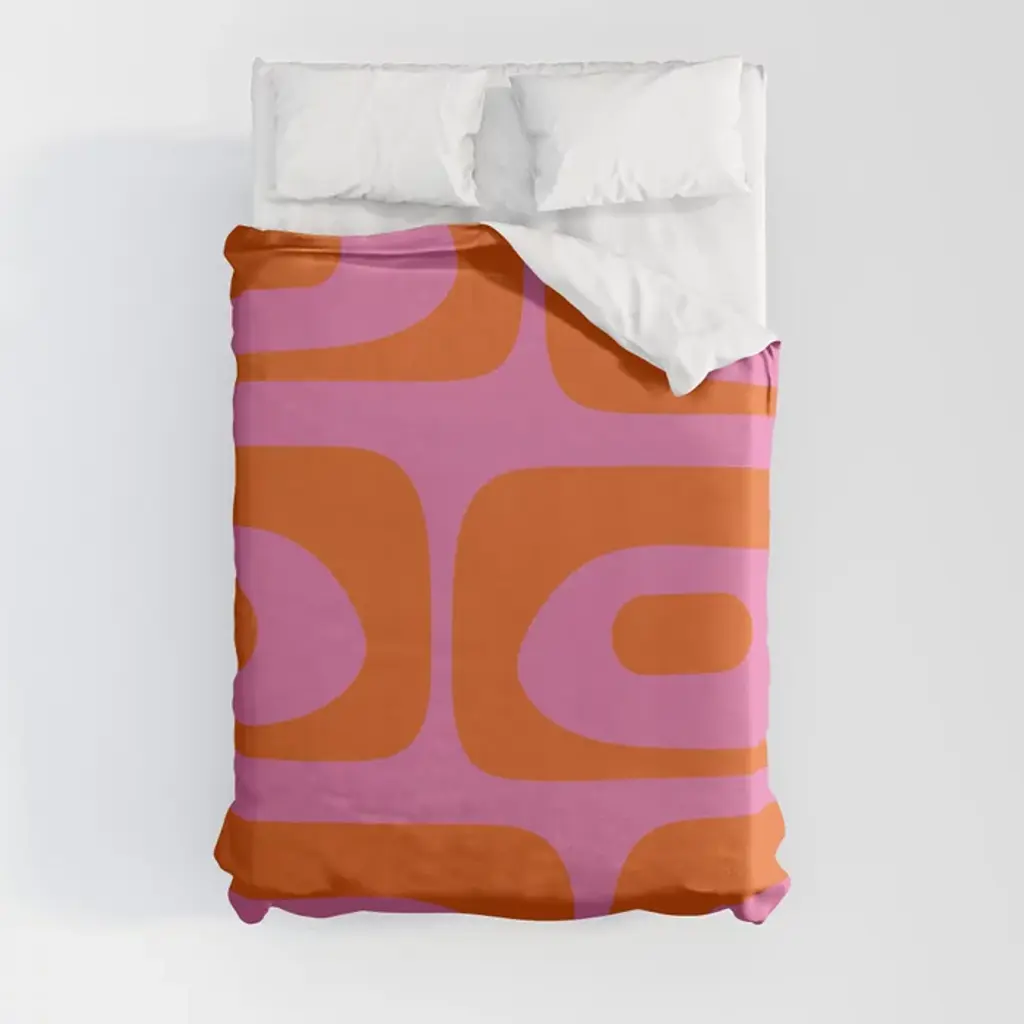 Mid Century Modern Abstract Pattern 721 Mid Mod Orange & Red Duvet Cover