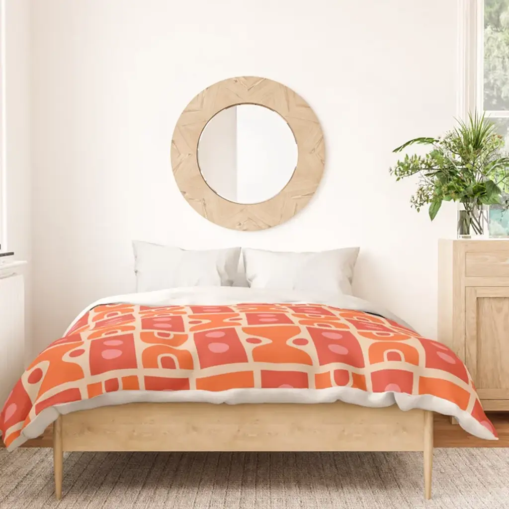 Mid Century Modern Abstract Pattern 721 Mid Mod Orange & Red Duvet Cover