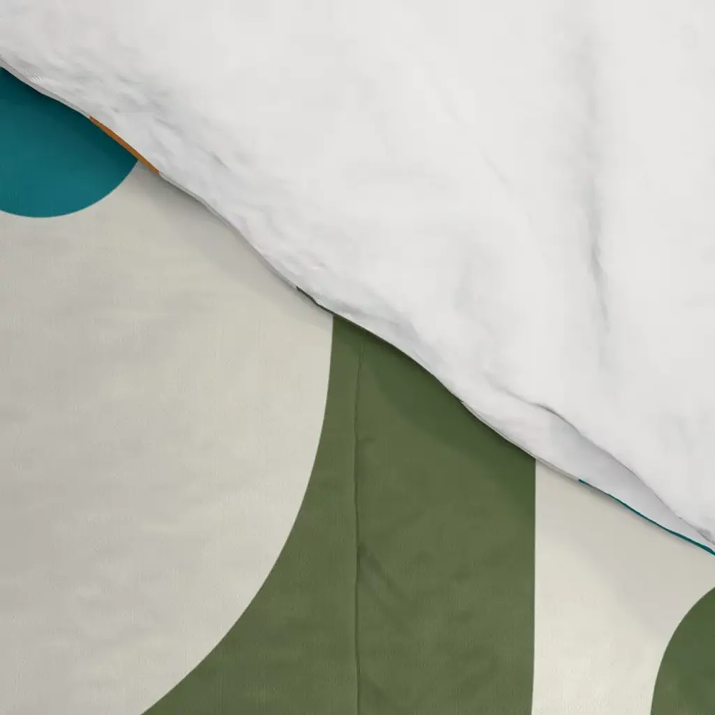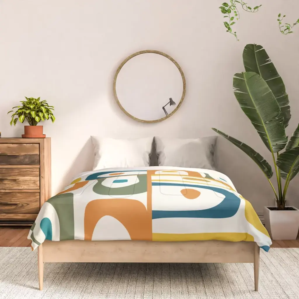 Mid Century Modern Abstract Piquet Multi Pattern In Moroccan Mustard Olive Blue Orange Cream Comforter