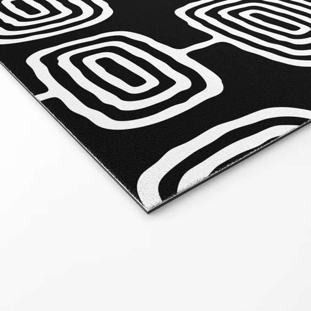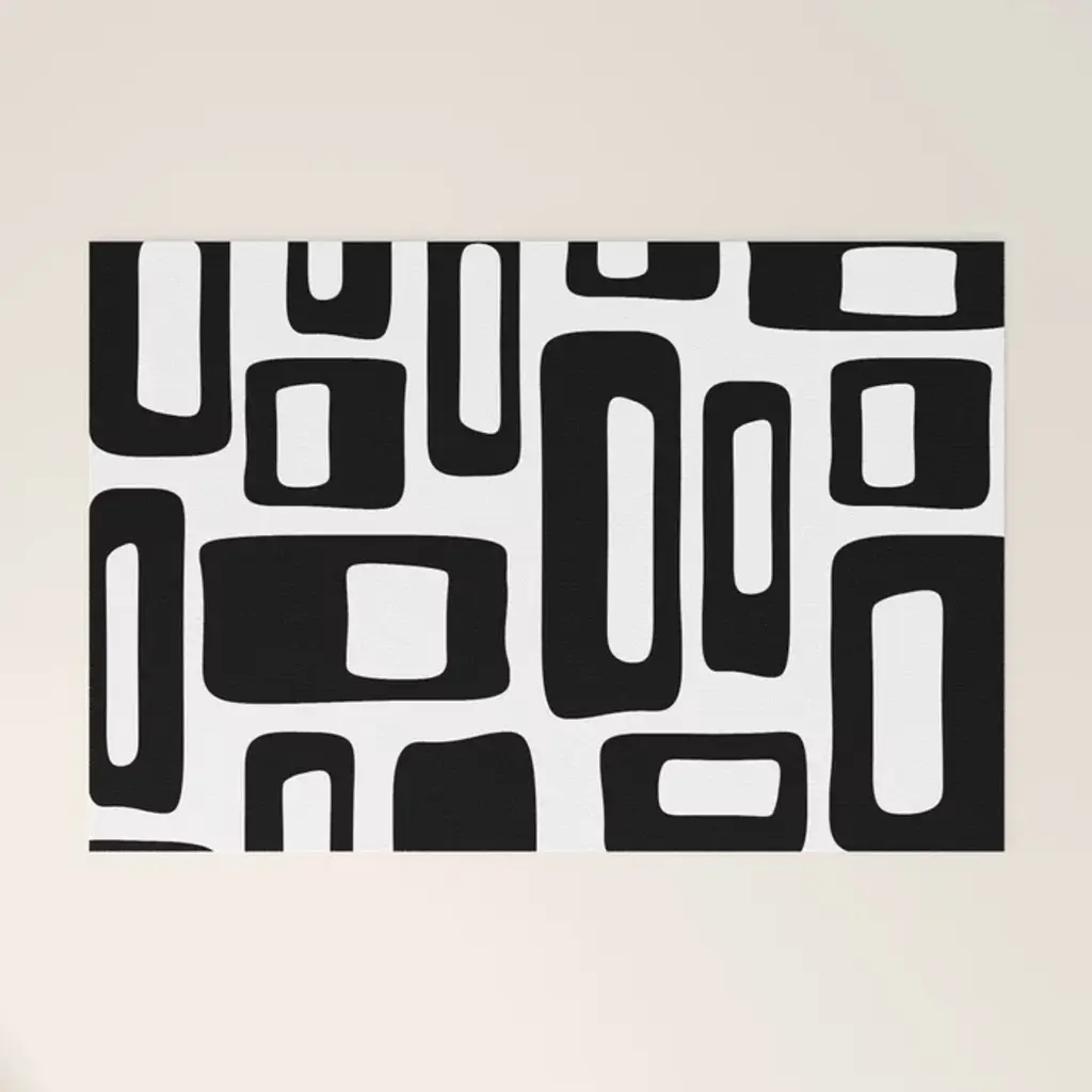 Mid Century Modern Atomic Rings Pattern Black And White Welcome Mat