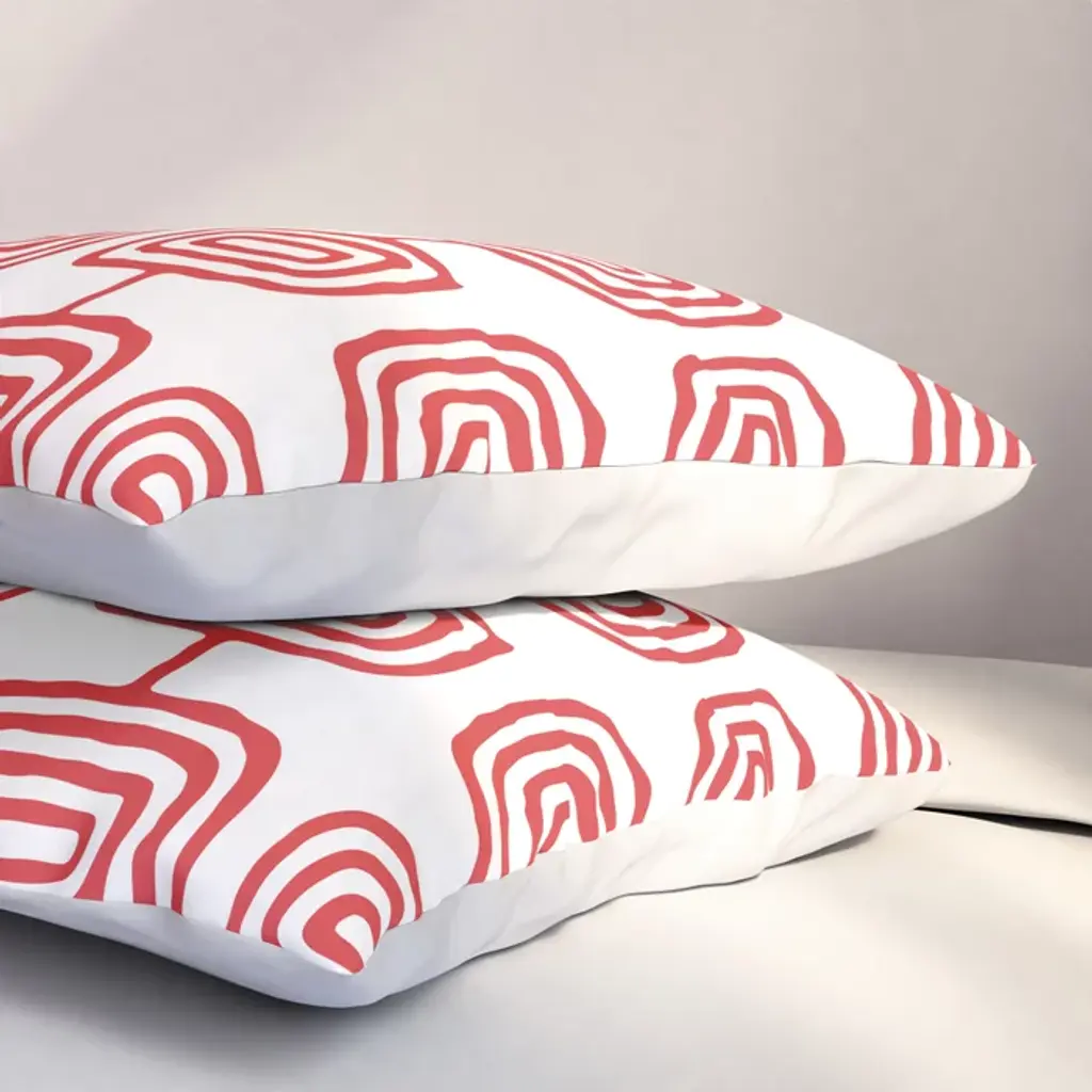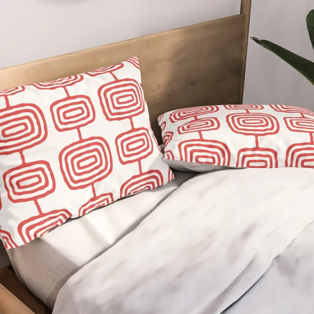Mid Century Modern Atomic Rings Pattern Red 3 Pillow Sham