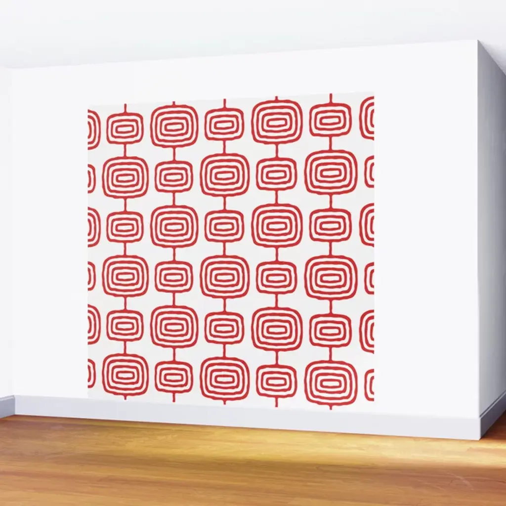Mid Century Modern Atomic Rings Pattern Red 3 Wall Mural