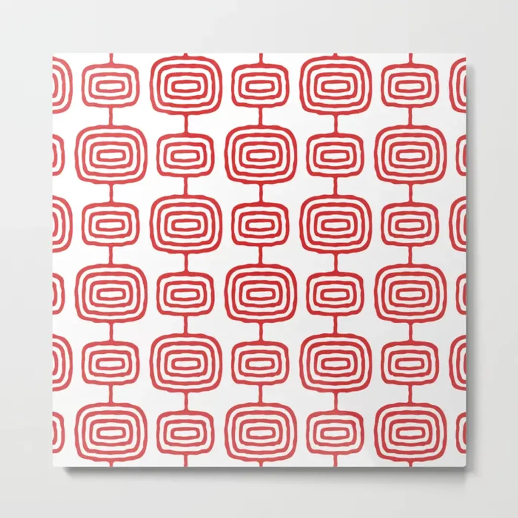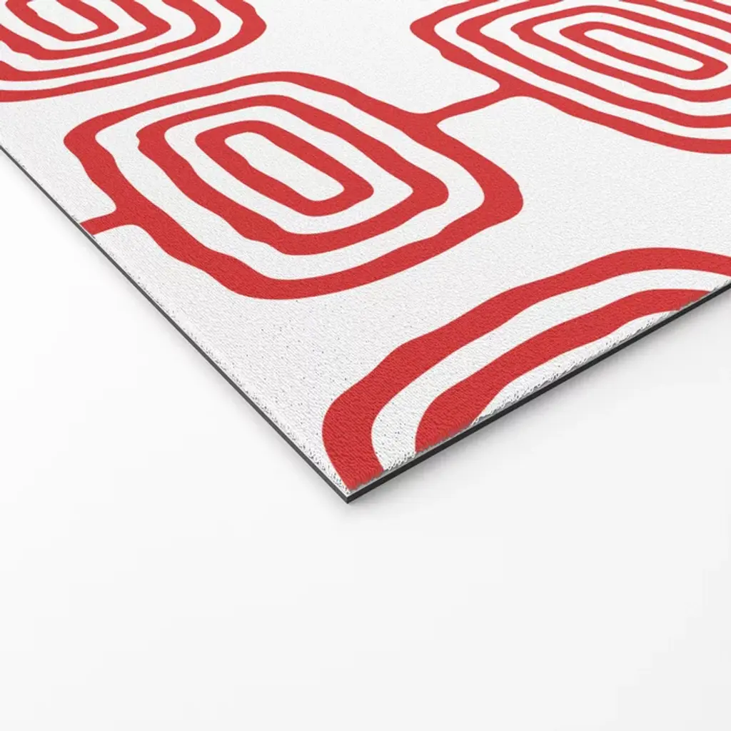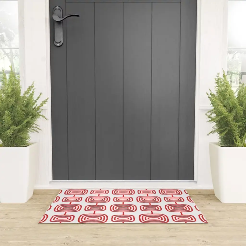 Mid Century Modern Atomic Rings Pattern Red 3 Welcome Mat