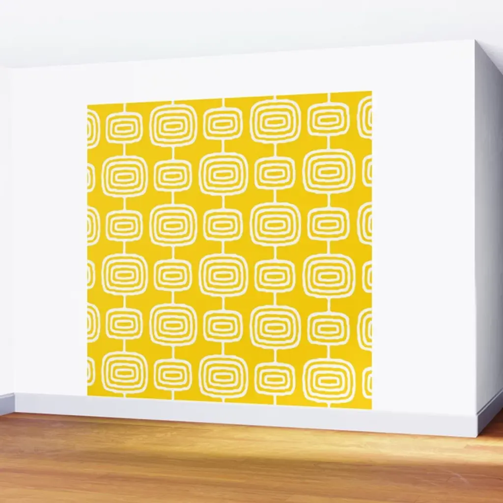 Mid Century Modern Atomic Rings Pattern Yellow Wall Mural