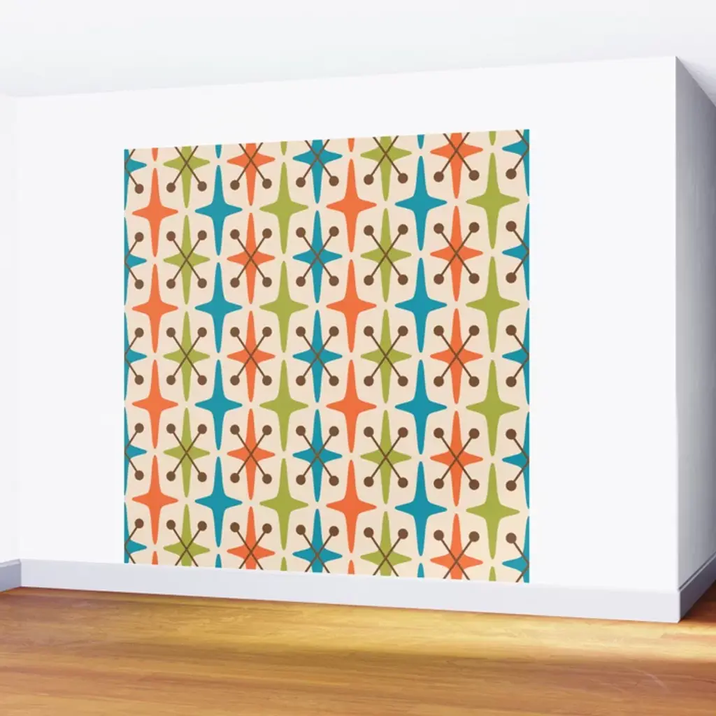 Mid Century Modern Atomic Starburst Pattern 441 Orange Brown Turquoise Chartreuse Wall Mural