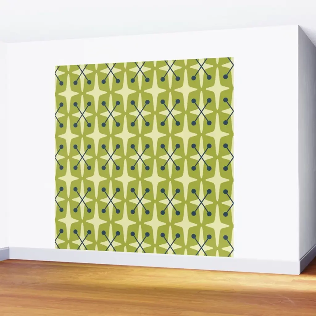 Mid Century Modern Atomic Starburst Pattern 541 Green Wall Mural
