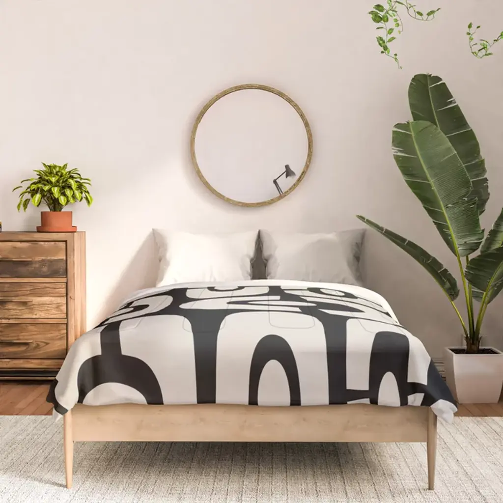 Mid Century Modern Cosmic Abstract 364 Black And Linen White Comforter