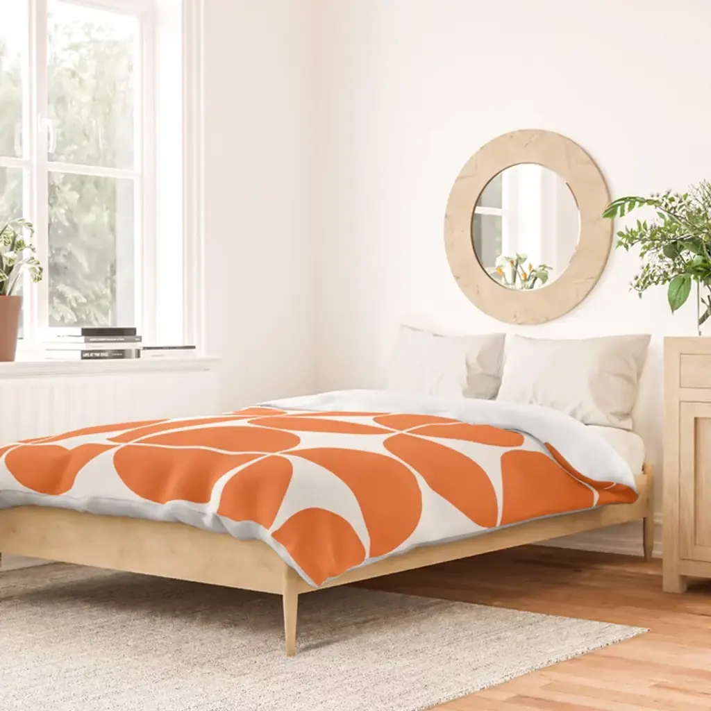 Mid Century Modern Geometric 04 Orange Duvet Cover