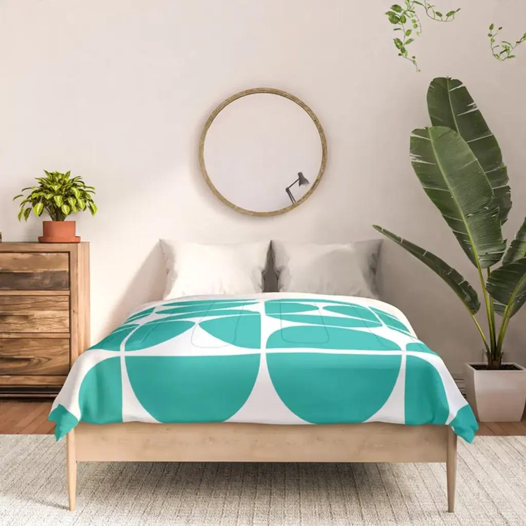 Mid Century Modern Geometric 04 Turquoise Comforter