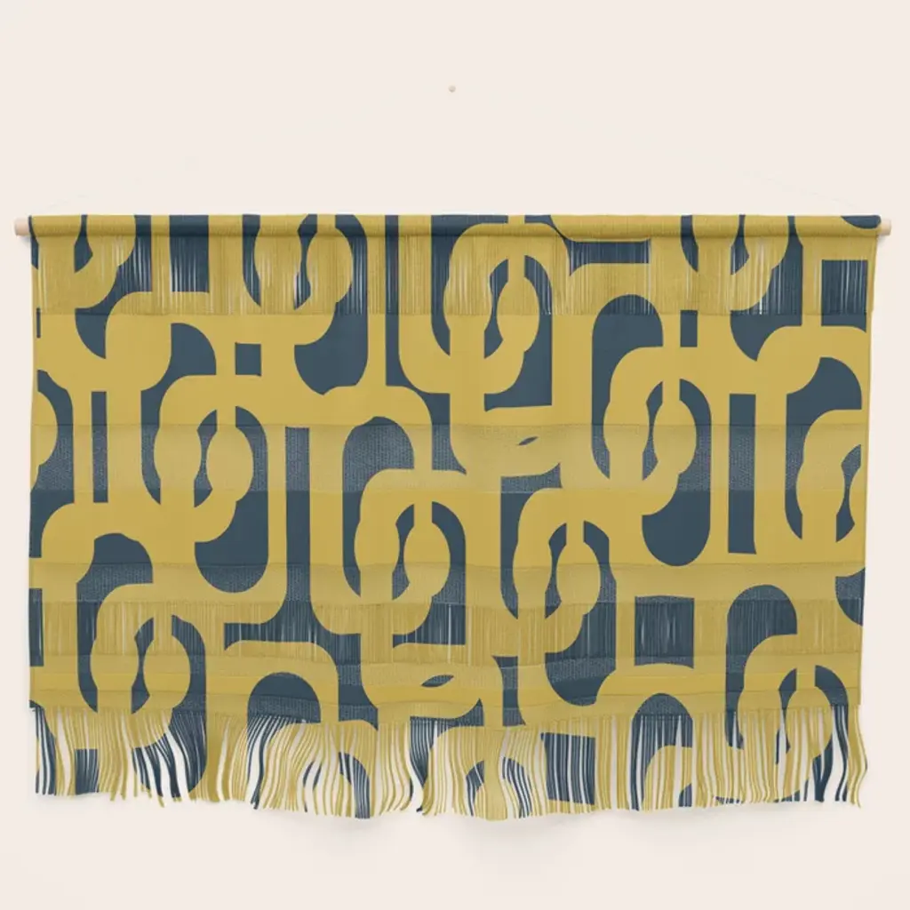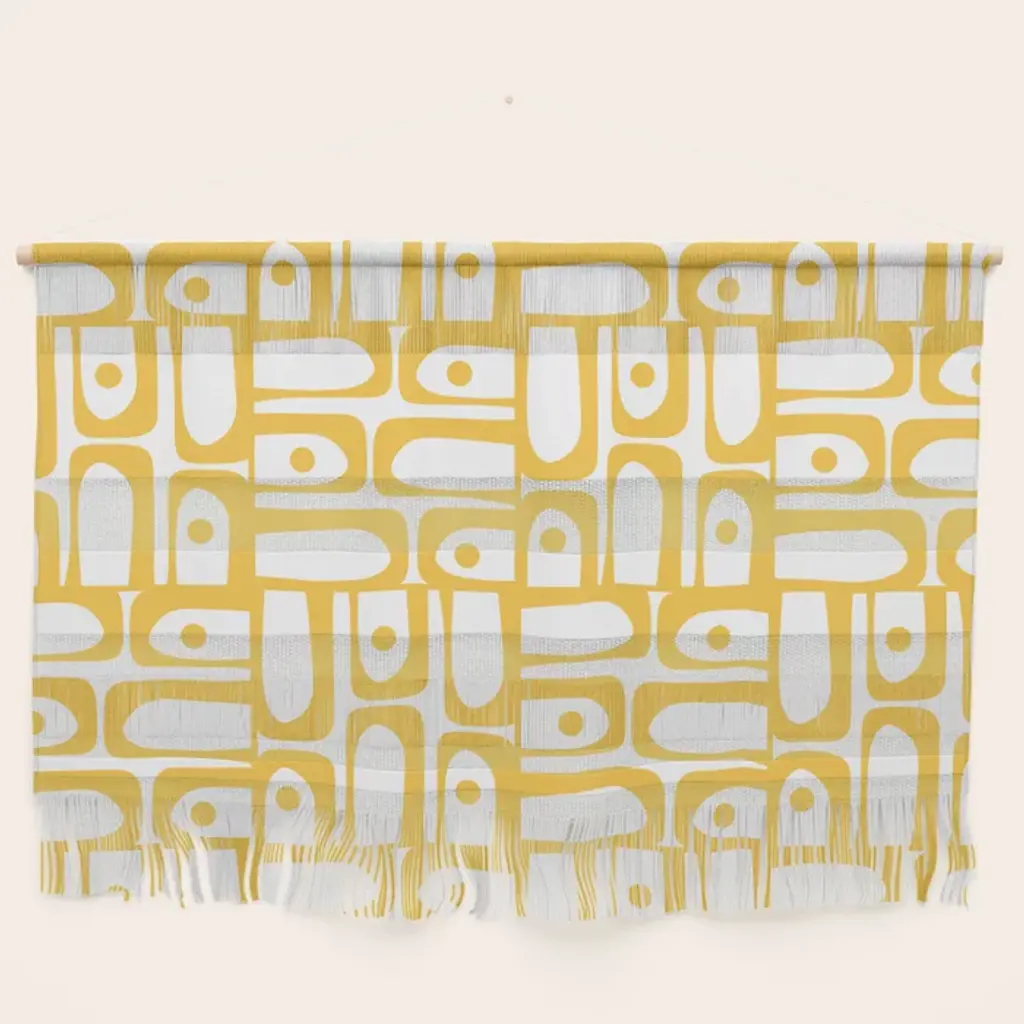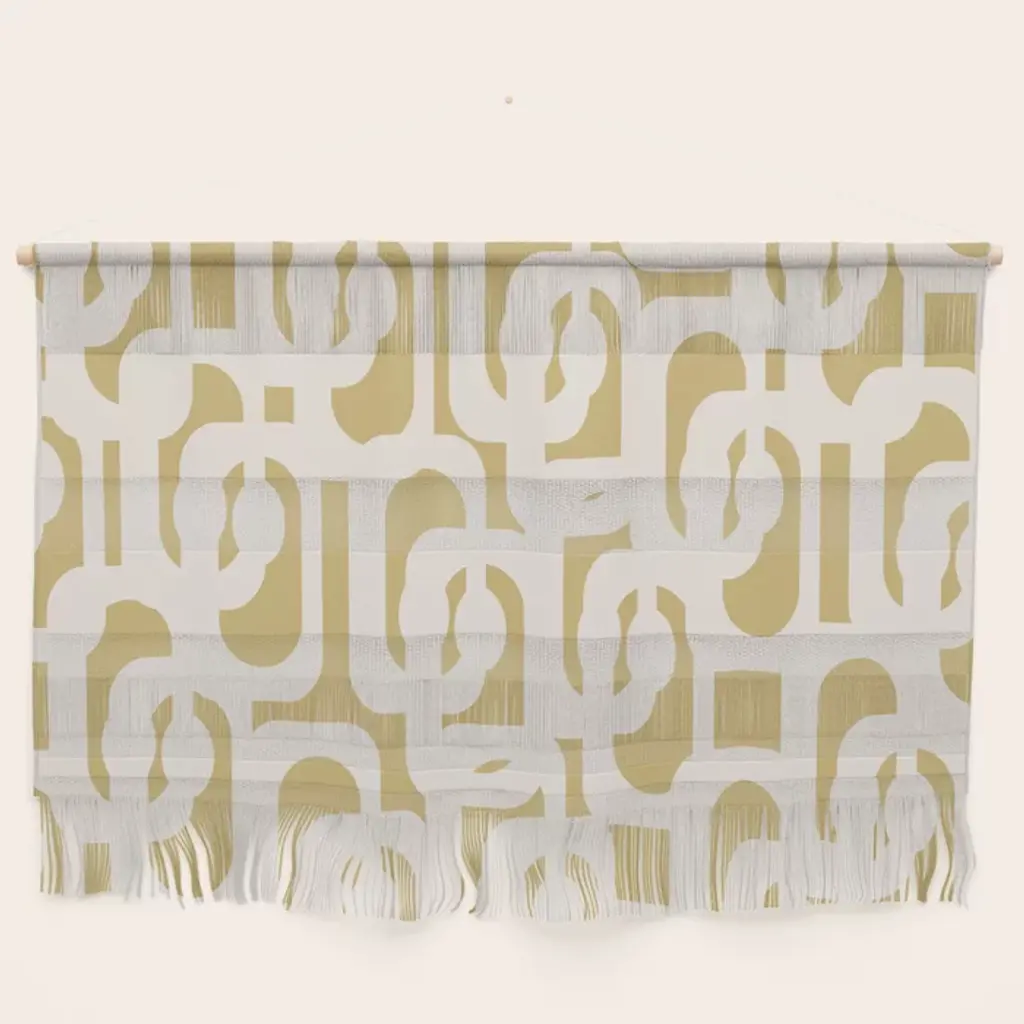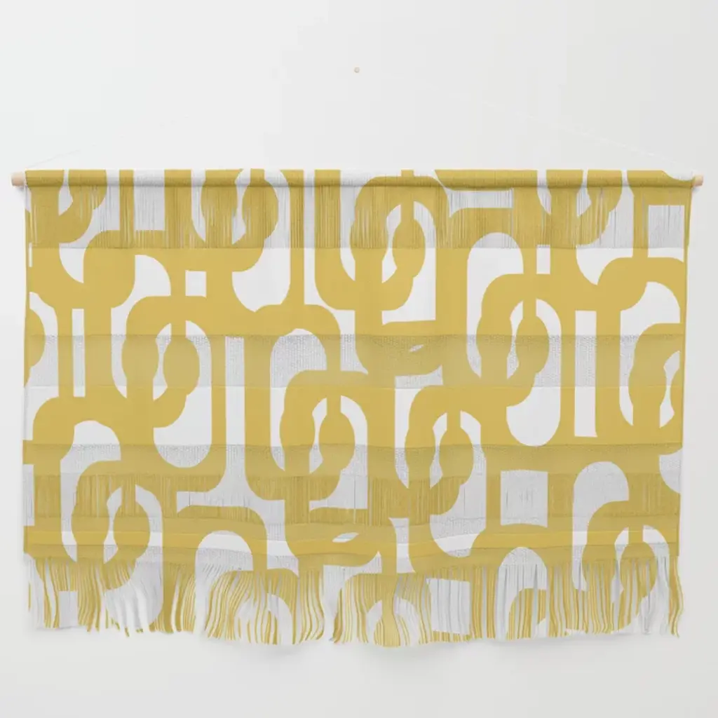 Mid Century Modern Loop Pattern In Muted Dijon Gold And Cream Wall Hanging