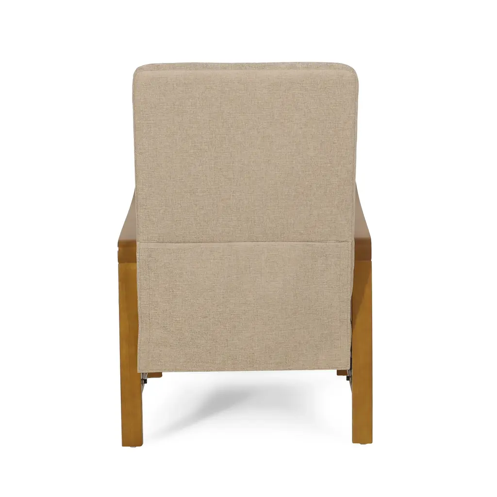 CONTEMPORARY DESIGN: Featuring smooth channel stitching and a rich wood frame, our recliner offers the look, feel, and design of a truly contemporary piece with a touch of mid-century charm. With a minimalistic yet refined structure, this set brings out a simplistic style that emphasizes comfort and functionality.. PUSH-BACK RECLINER: This recliner is a push-back recliner that allows you to lay back and relax after a long day. Simply use your body weight to push the chair back to recline and tilt your body weight forward and upwards to bring it back to the upright position.. CHANNEL STITCHING: The channel stitching in the backrest offers an extra touch of sophistication that provides a smooth design. The straight stitch pattern adds a bit of texture without sacrificing any comfort.. RUBBERWOOD FRAME: Our environmentally-friendly wood not only offers plenty of durability, but it also gives this piece a beautiful natural-grain look. Combined with a gorgeous finish, this wood will truly stand out in any room.. DIMENSIONS: Choose an accessory that is the perfect size for you and your furniture. This recliner is 24.75” W x 35.75” D x 38.00” H in its upright position and 24.75” W x 55.50” D x 33.75” H when fully reclined. You will love how much your space can transform with the simple addition of this charming recliner.